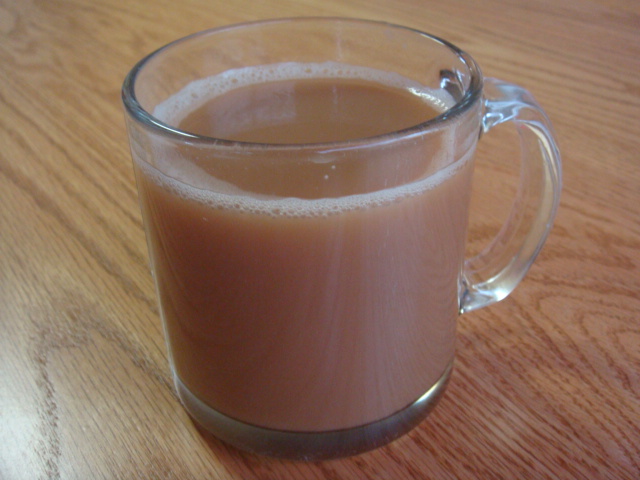 My first cup of Bhakti Chai — my dad goes through a jar a day! It was a little too spiced up for my taste (even mixed with half a cup of water and a little coconut milk!) but it was growing on me by the time I had almost finished.