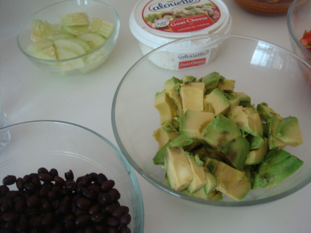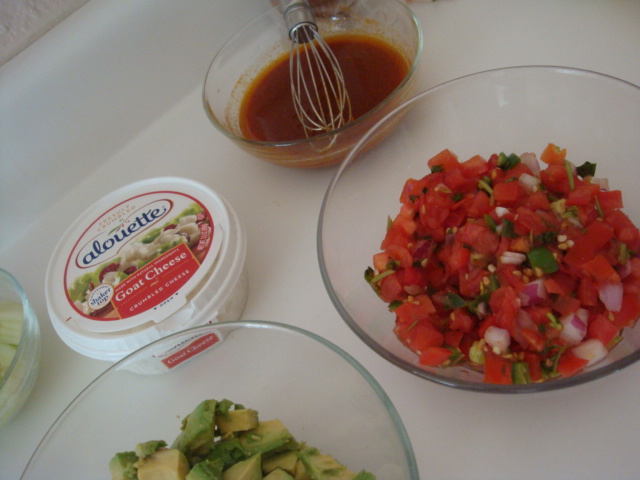 Course #1 = Gazpacho. Why you ask? Well at the Farmer’s Market a few weeks ago there was a tent selling this particular chilled soup and Joey innocently asked, “What’s gahzzpatchoo?” Clearly he’d never heard of or tasted gazpacho before and my mom felt that this was a problem that needed fixing. Sidenote: I’m not a fan of gazpacho. I feel like I’m eating a bowl of salsa, but for you, Mom, I’ll try anything 🙂