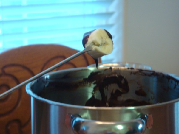 The banana was definitely my favorite, but for the most part I think I ate more plain fruit than chocolate-dipped. Result: I felt satisfied afterwards, whereas everyone else was complaining about how full they felt! I was even feeling a little hungry by the time I got into bed so I made sure to have a snack before my 3-miler this morning — half banana + smear of PB per usual.