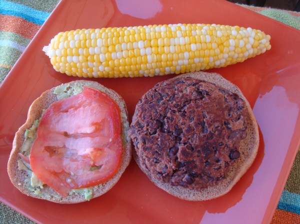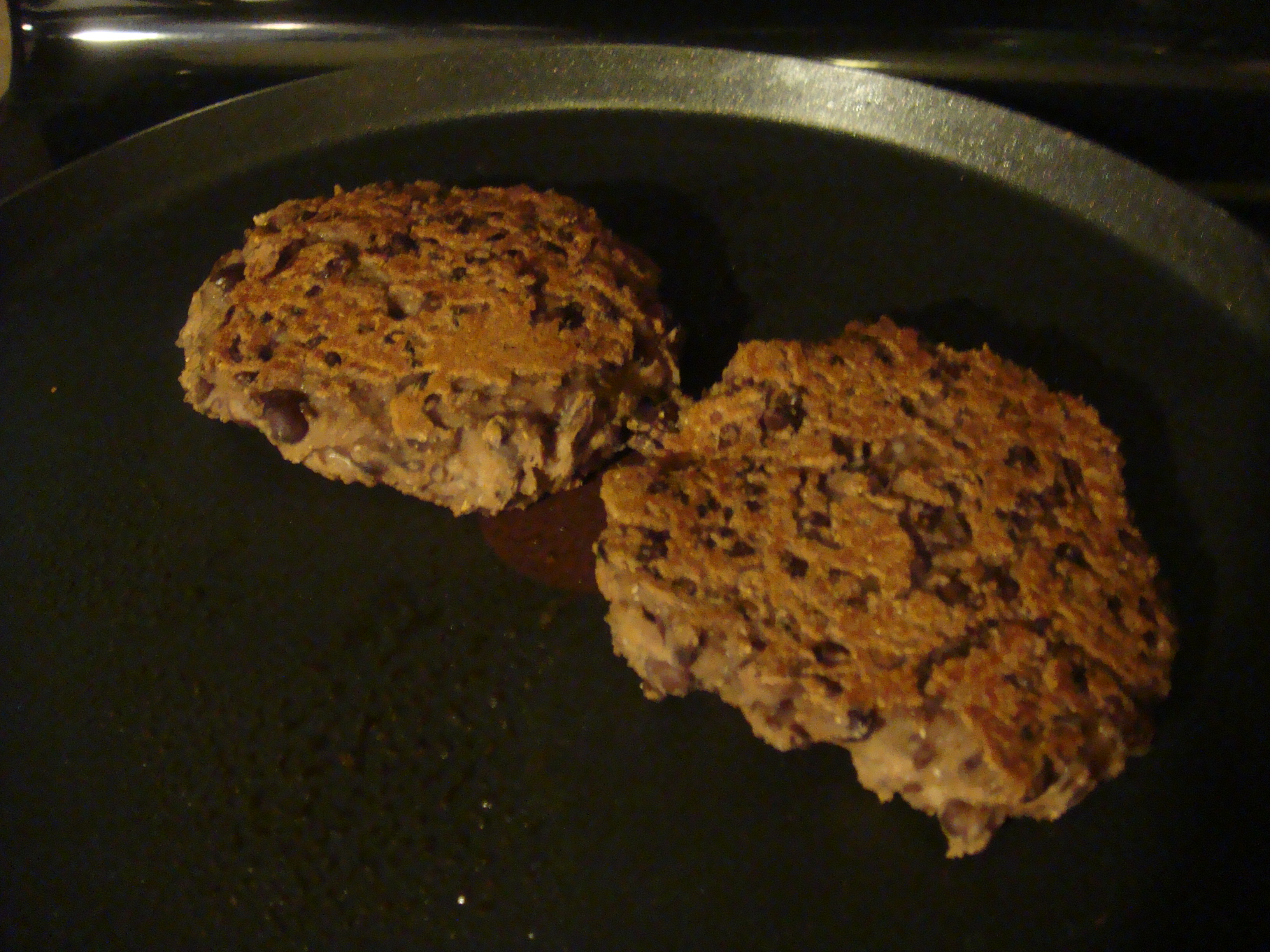 We used a combo of Kath’s recipe and Angela’s recipe. Ours had beans, flour, s & p and BBQ sauce and we topped with slices of tomato and mashed avocado. I wish we woulda had some pickles. A nice crunch woulda been perrrfect.