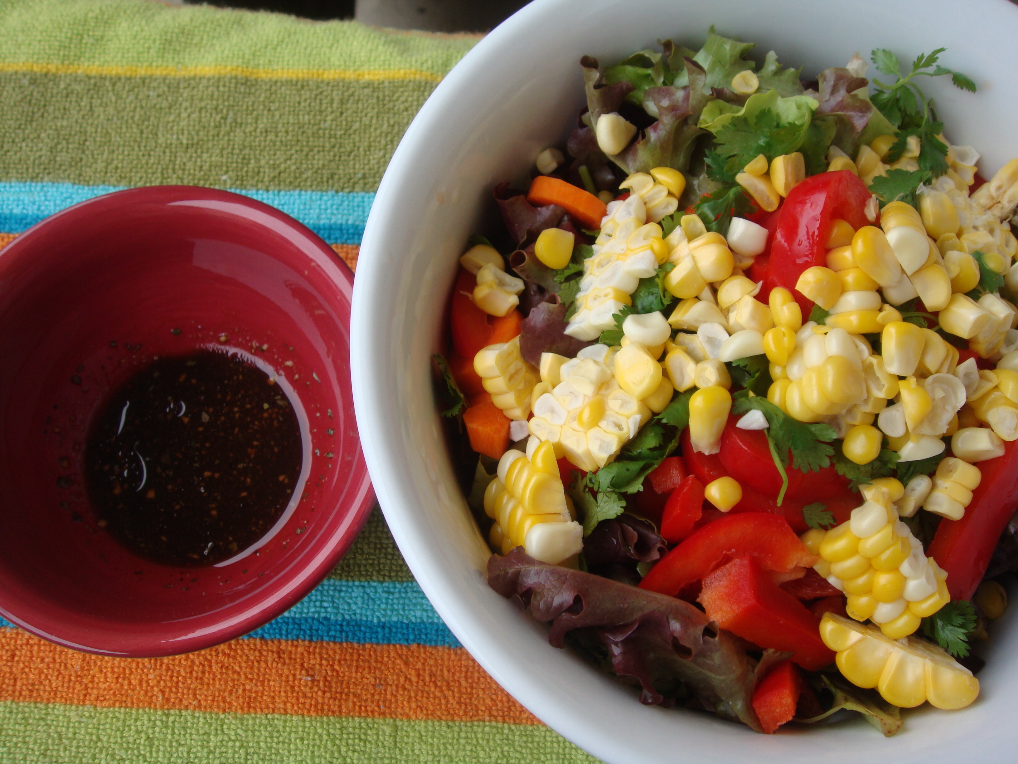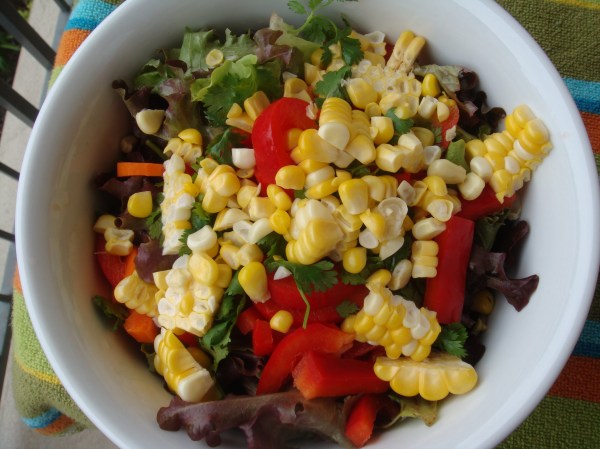 I tossed together this salad in a matter of minutes and threw it in a container to bring to the park. Before making the salad I asked Joey if I would look stupid eating this next to nacho-chowing fans, but then I thought ‘Who cares what I look like!’ If it’s a choice between eating something good or starving my way through the game just to avoid weird glances in the direction of my salad, I definitely pick good food.