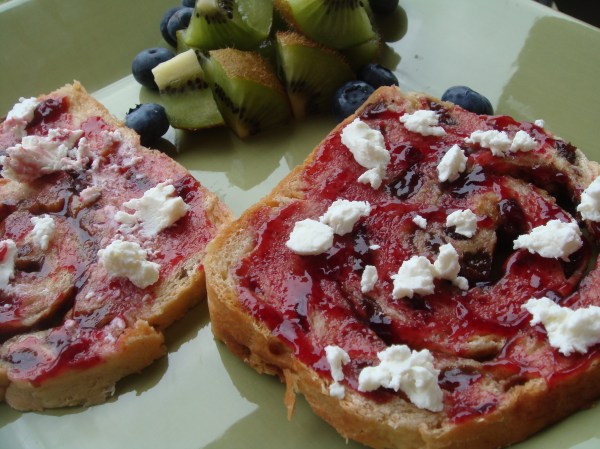 Cinnamon Raisin Swirl + fruit compote + goat cheese = MAGNIFICENT