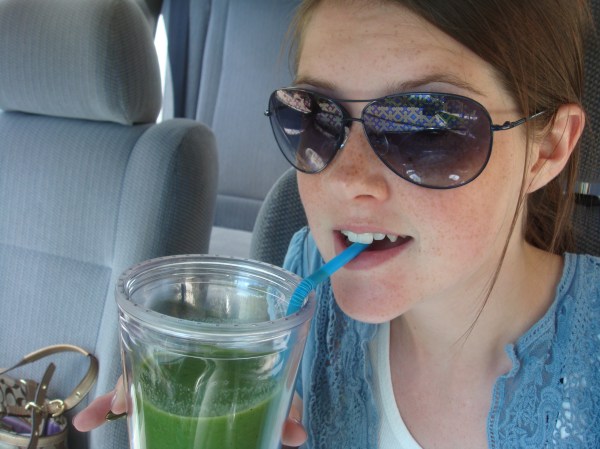 I sipped on a BRIGHT GREEN smoothie on my way to get a massage from my mom — free massages feel so much better 🙂 And my calves were much less sore afterwards, thank goodness.