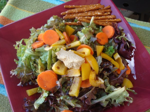 Massage was followed by a big plate of green, with some yellow bell pepper, carrot, hummus and pretzels