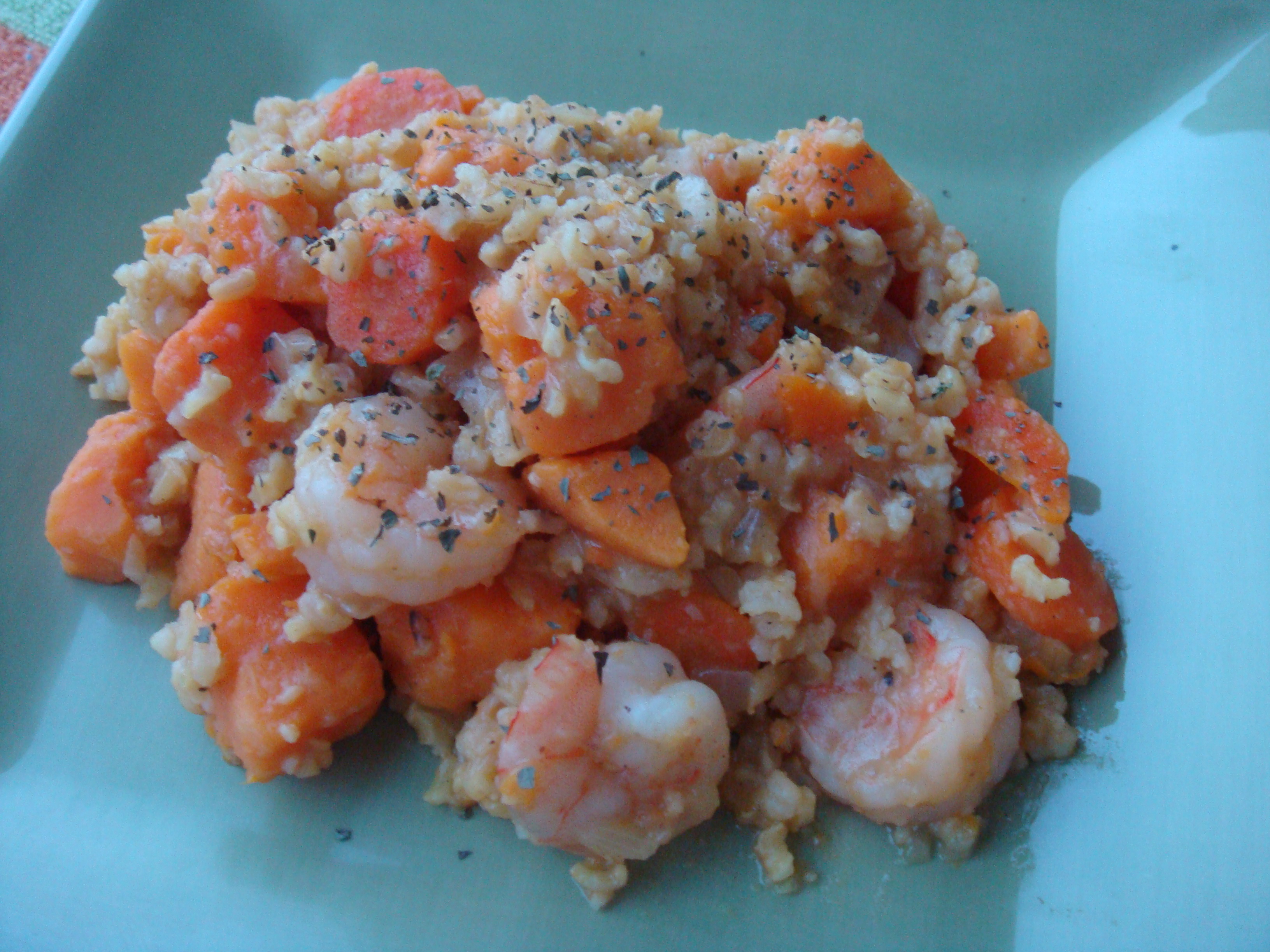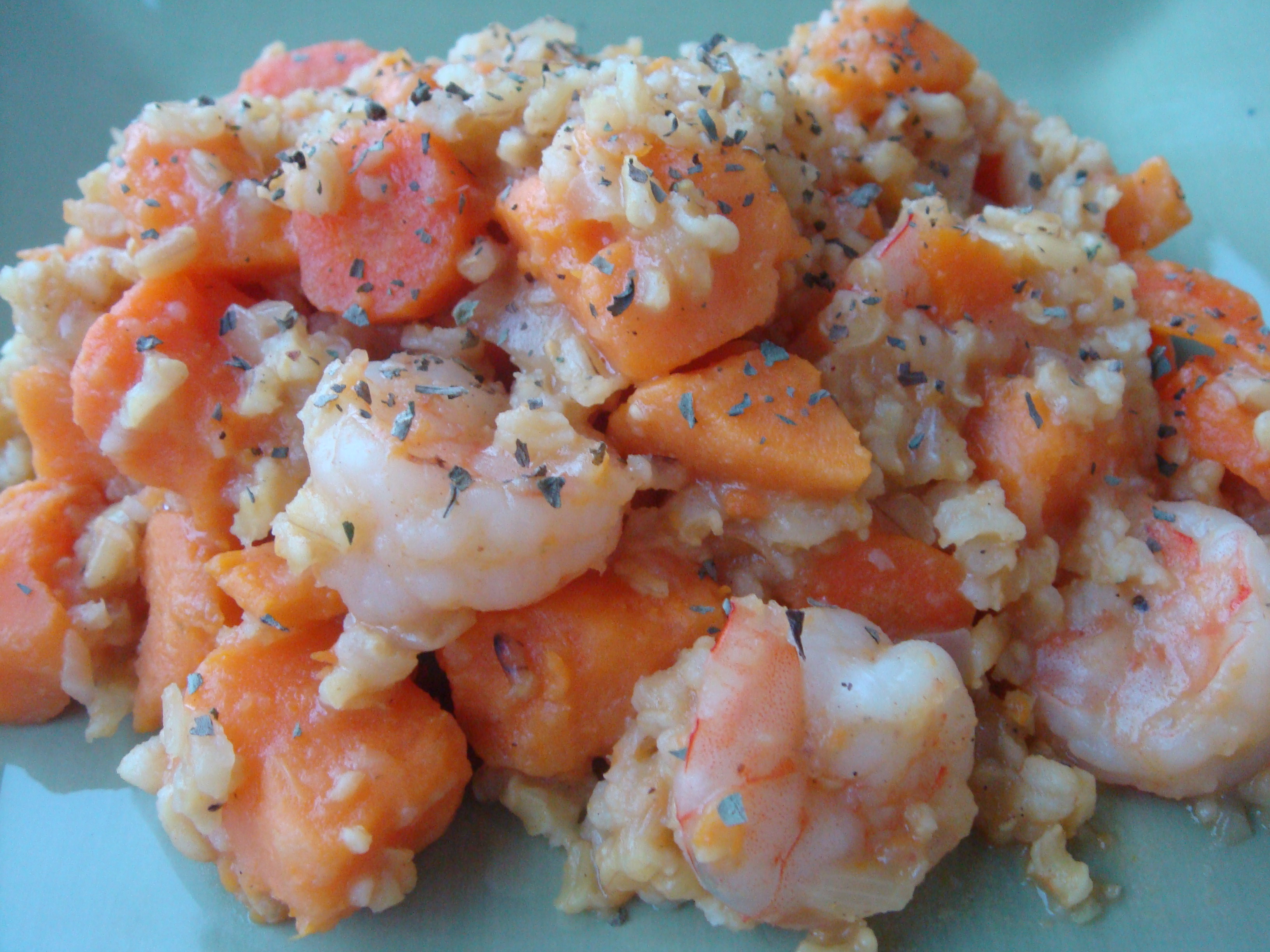 The recipe called for russet potatoes and white rice but I thought sweet potatoes and brown rice would be better. Yum yum, I LOVE curry!