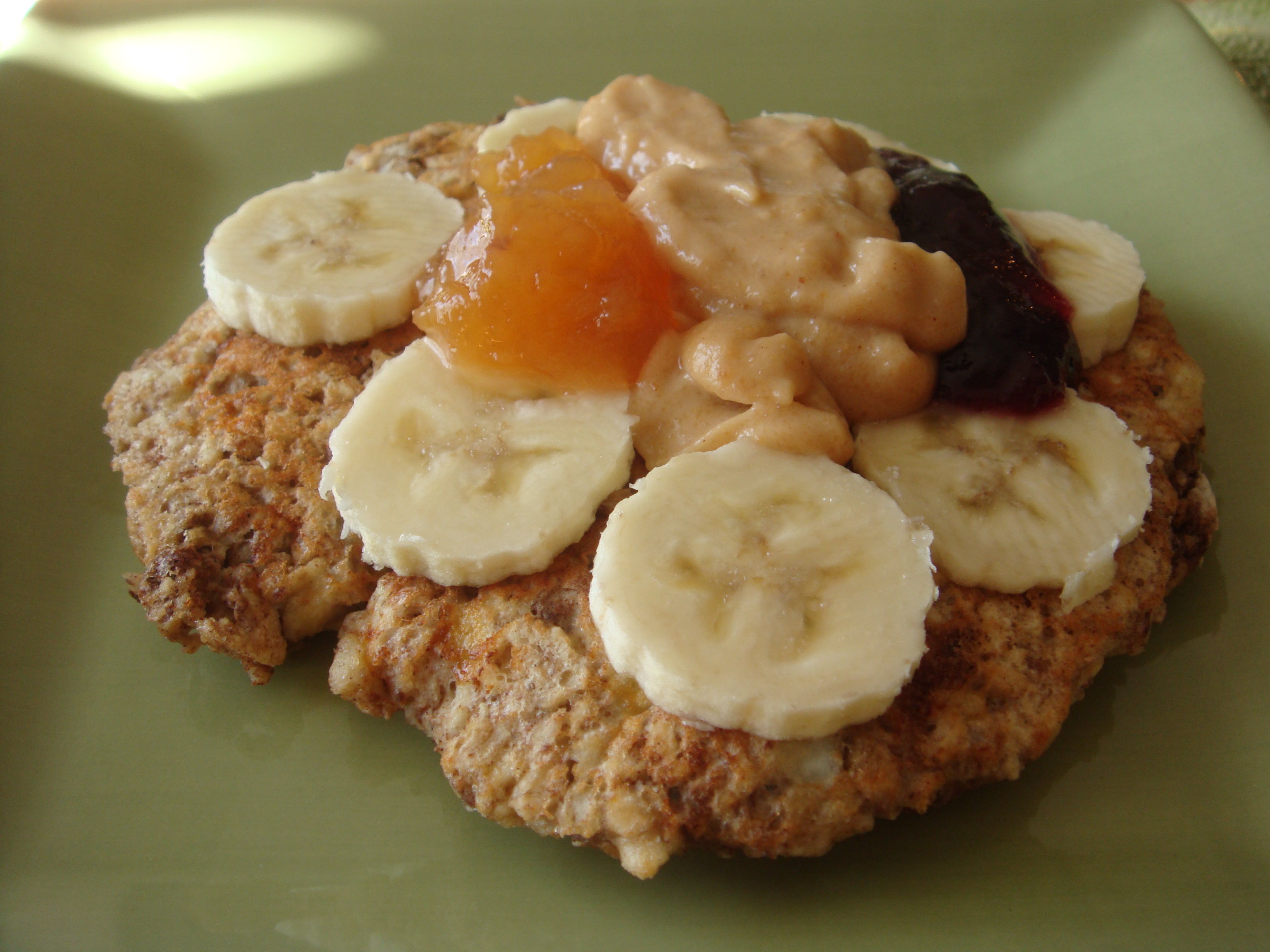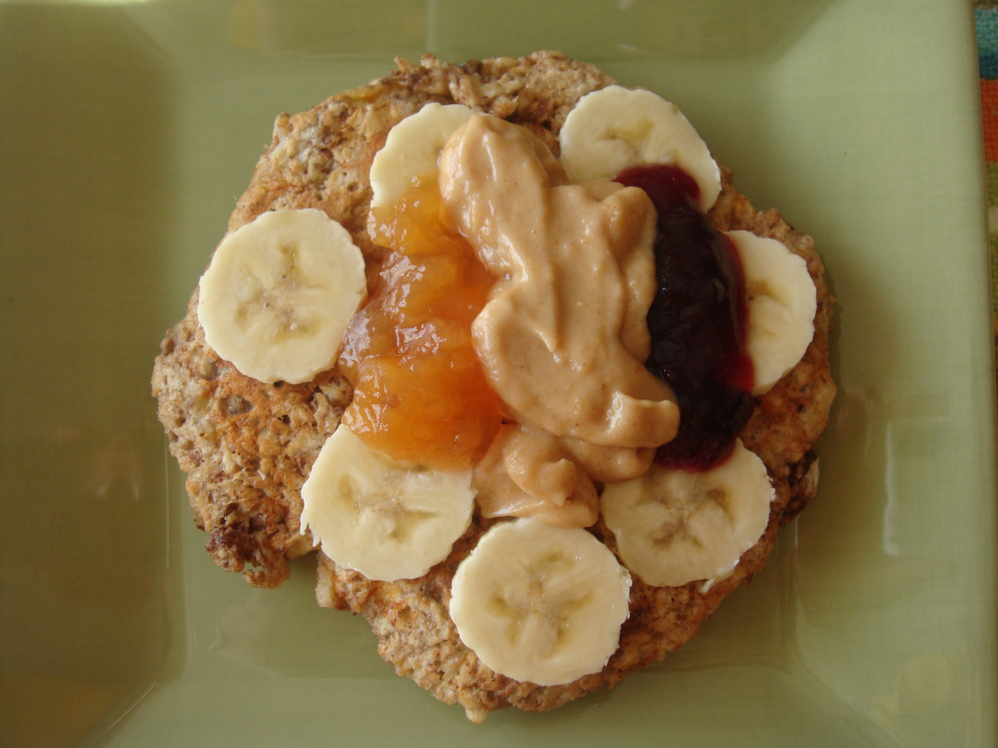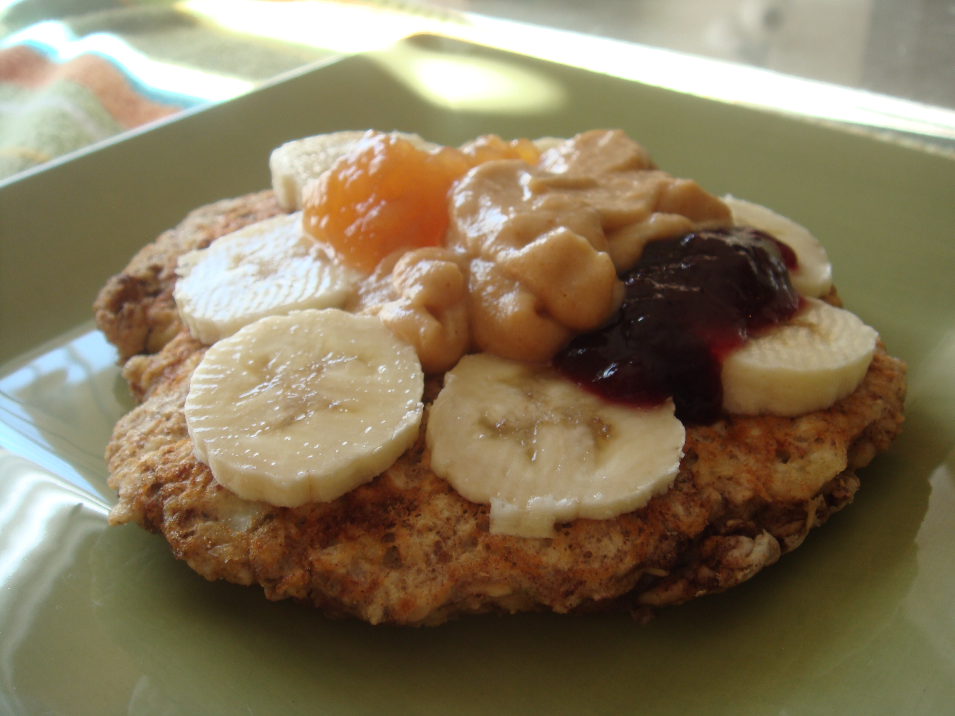 A glorious run deserves a glorious post-run breakfast, hence the return of the oatmeal pancake (Kath’s recipe)