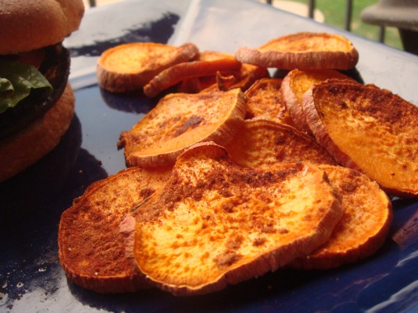Paired with sweet potato fries a la Kath (recipe found here). I usually cut spf’s into wedges but took Kath’s recommendation and made them chip shape and they were great! 30 minutes on 425, sprinkled with cinnamon and salt. Couldn’t be easier or more delicious 🙂