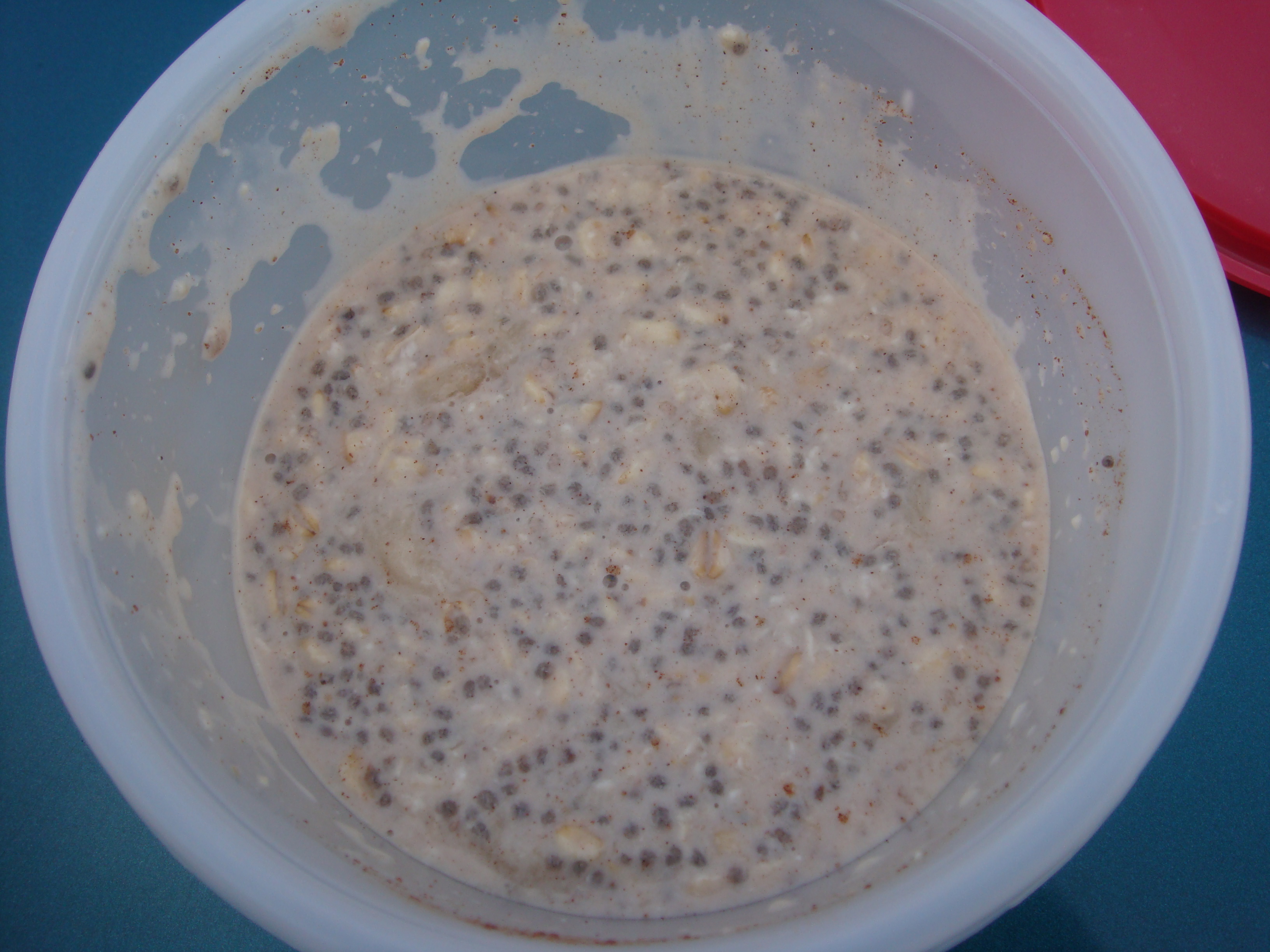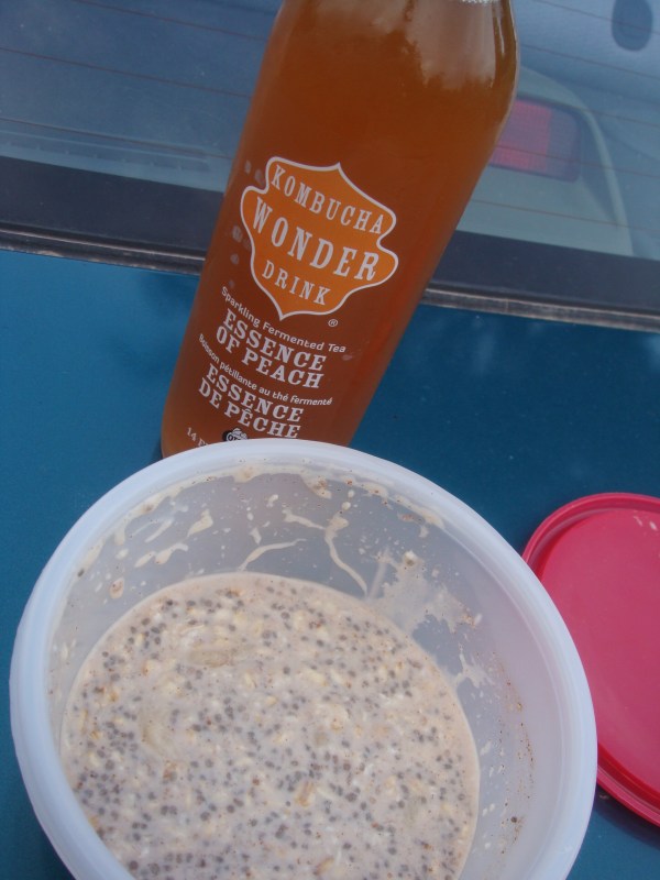 Some days my VOOs are a little liquid-y and sometimes they’re super thick — even though I use the same amounts every time! Today’s happened to be of the liquid-y variety. A graham topped with PB and jelly may also have found its way into the bowl later…