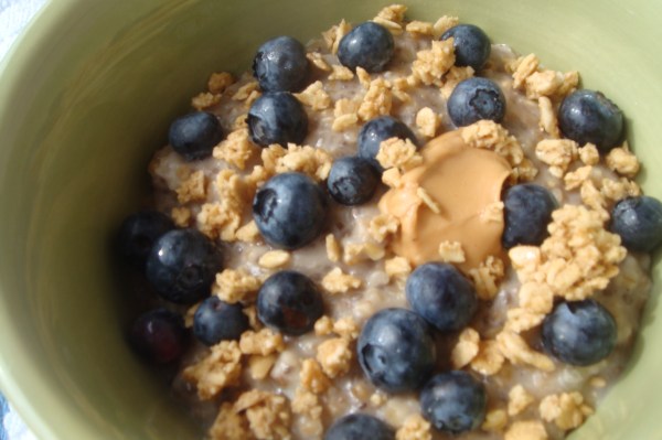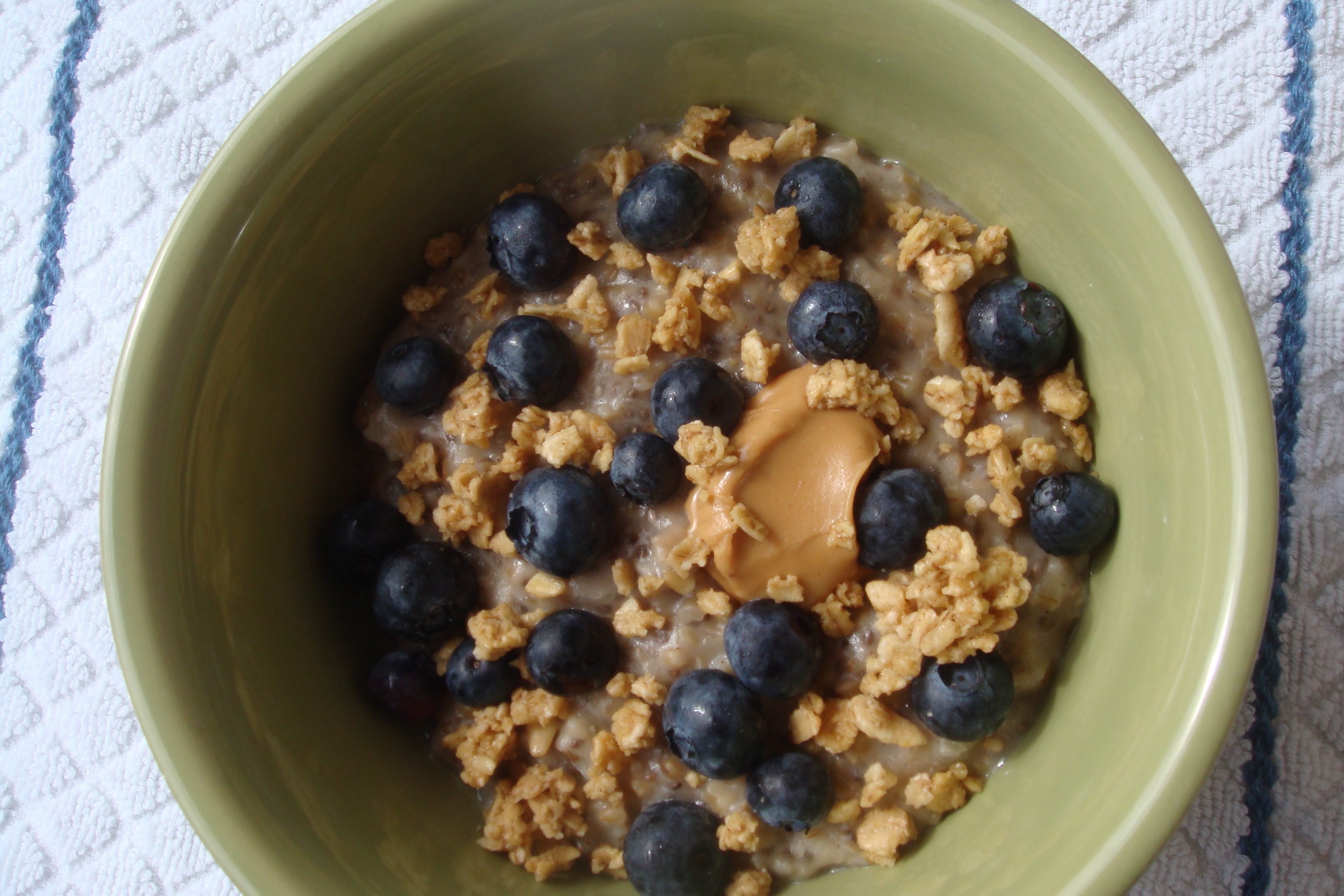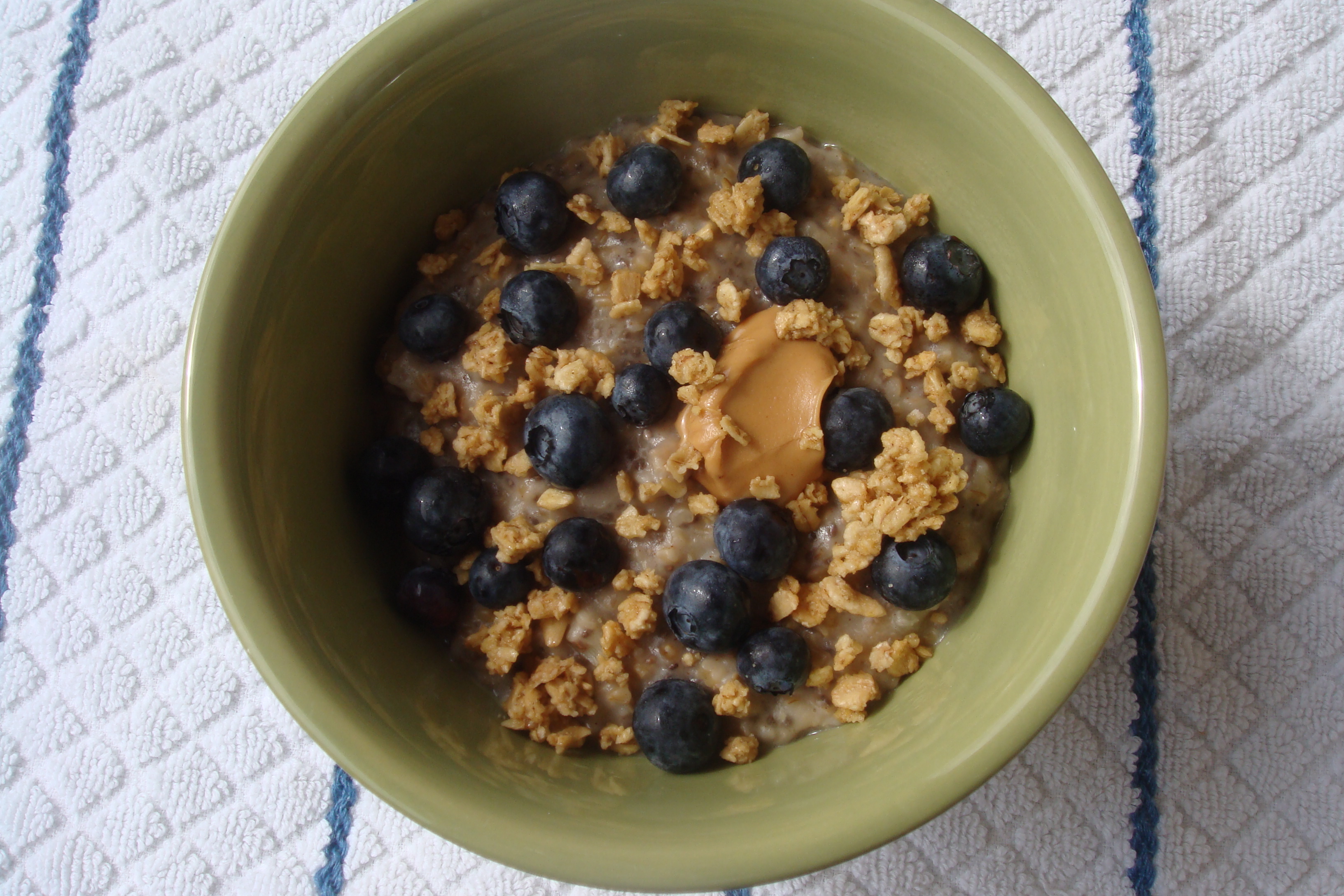 I topped mine with fresh organic blueberries, PB and Just Bunches.  I also had to let these sit in the fridge for ~7 minutes till they had cooled down enough to eat.