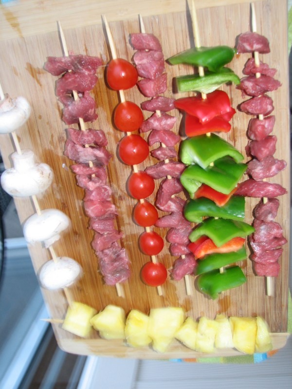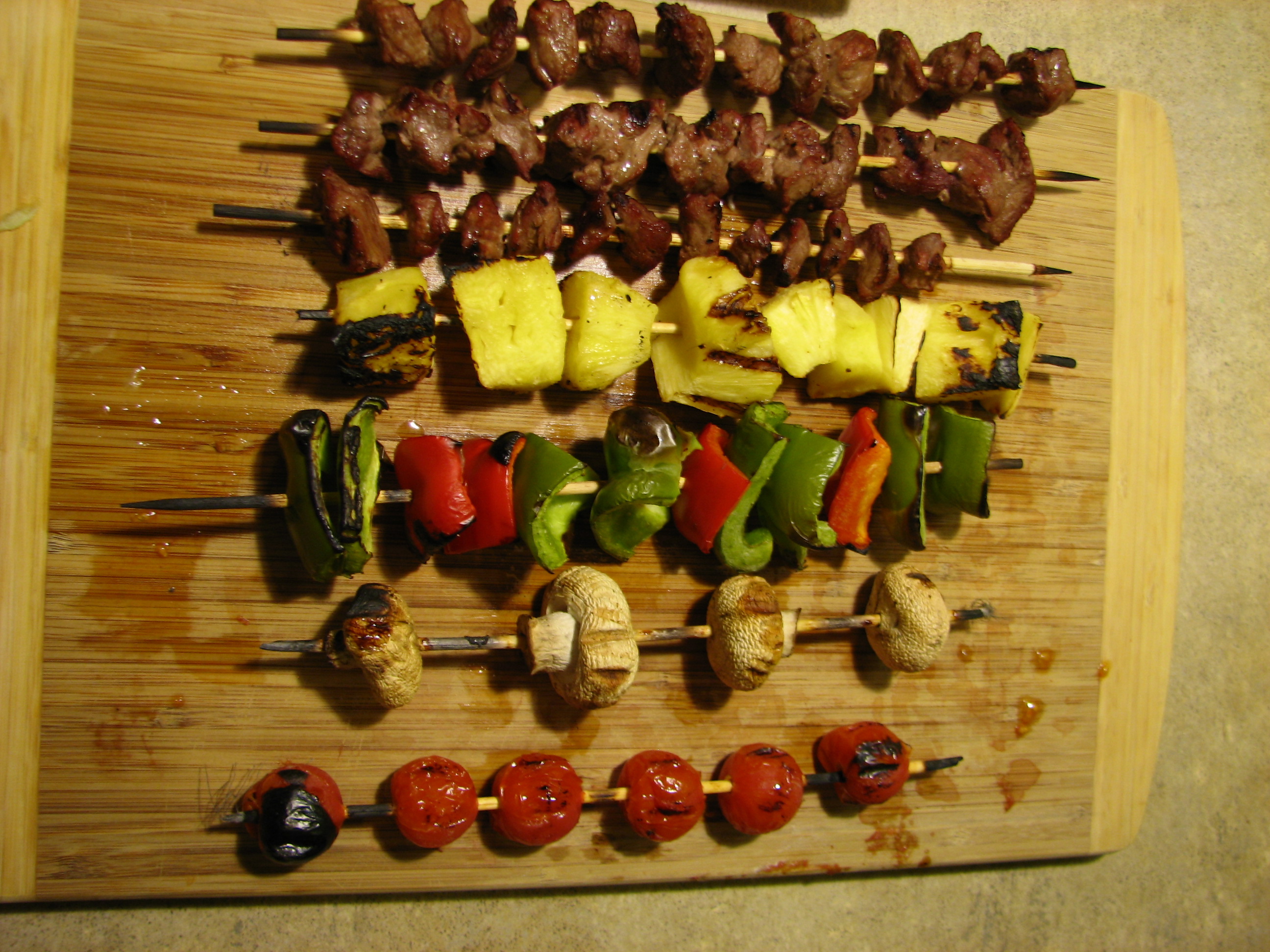 The before pic…steak, mushrooms, red & green bell peppers, cherry tomatoes and pineapples