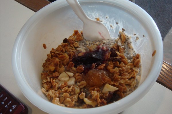 Hardboiled eggs are easy to bring places. But sometimes I feel self conscious chompin on whole eggs when other people can see. Haha, I really don’t know why though. Oats seem better for an audience!