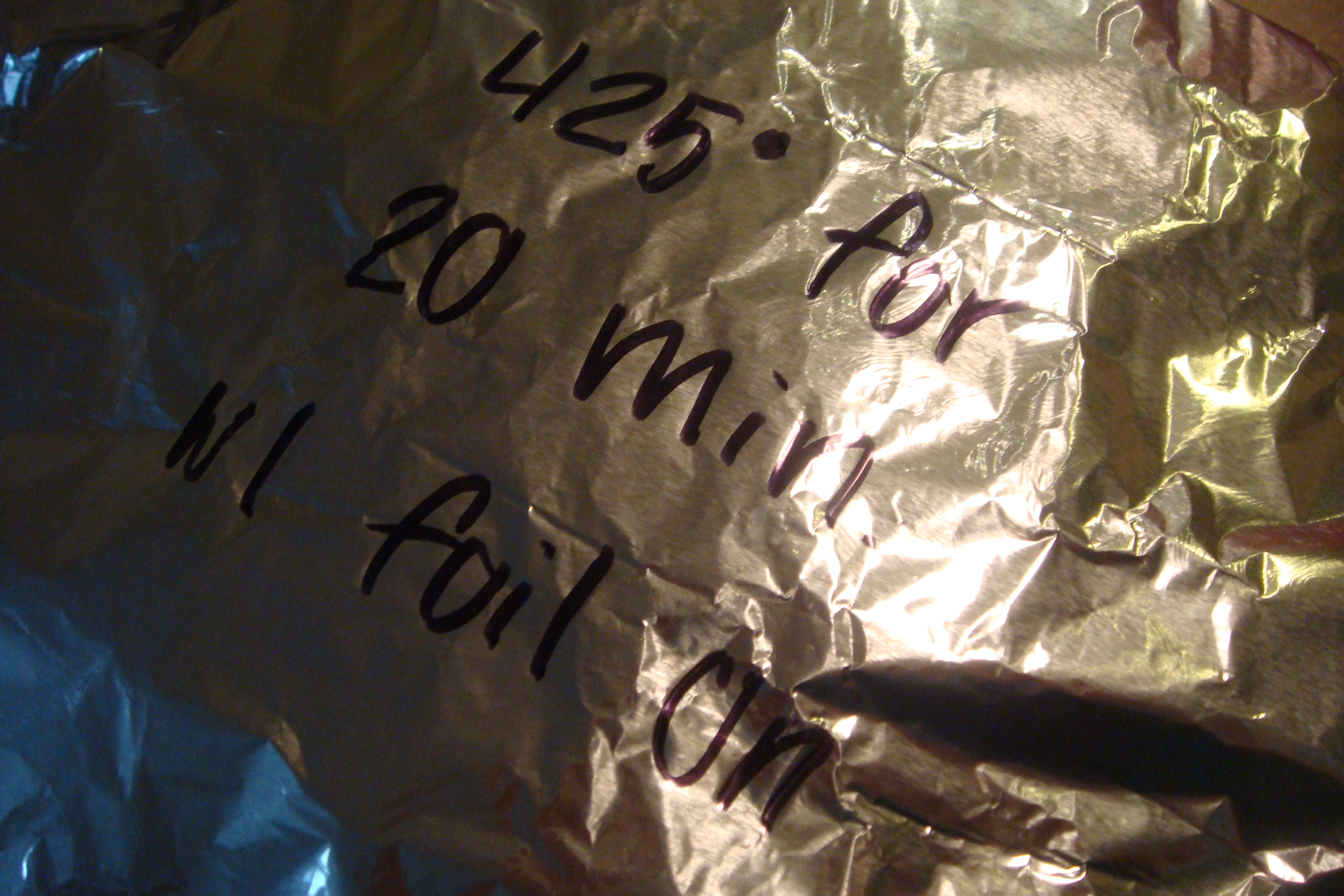Now all that needs to be done is the baking part.  I probably won’t be home till semi-late (in terms of dinner eating) so I left these lovely directions for Joey.  Now I can come home to a piping hot dinner 🙂