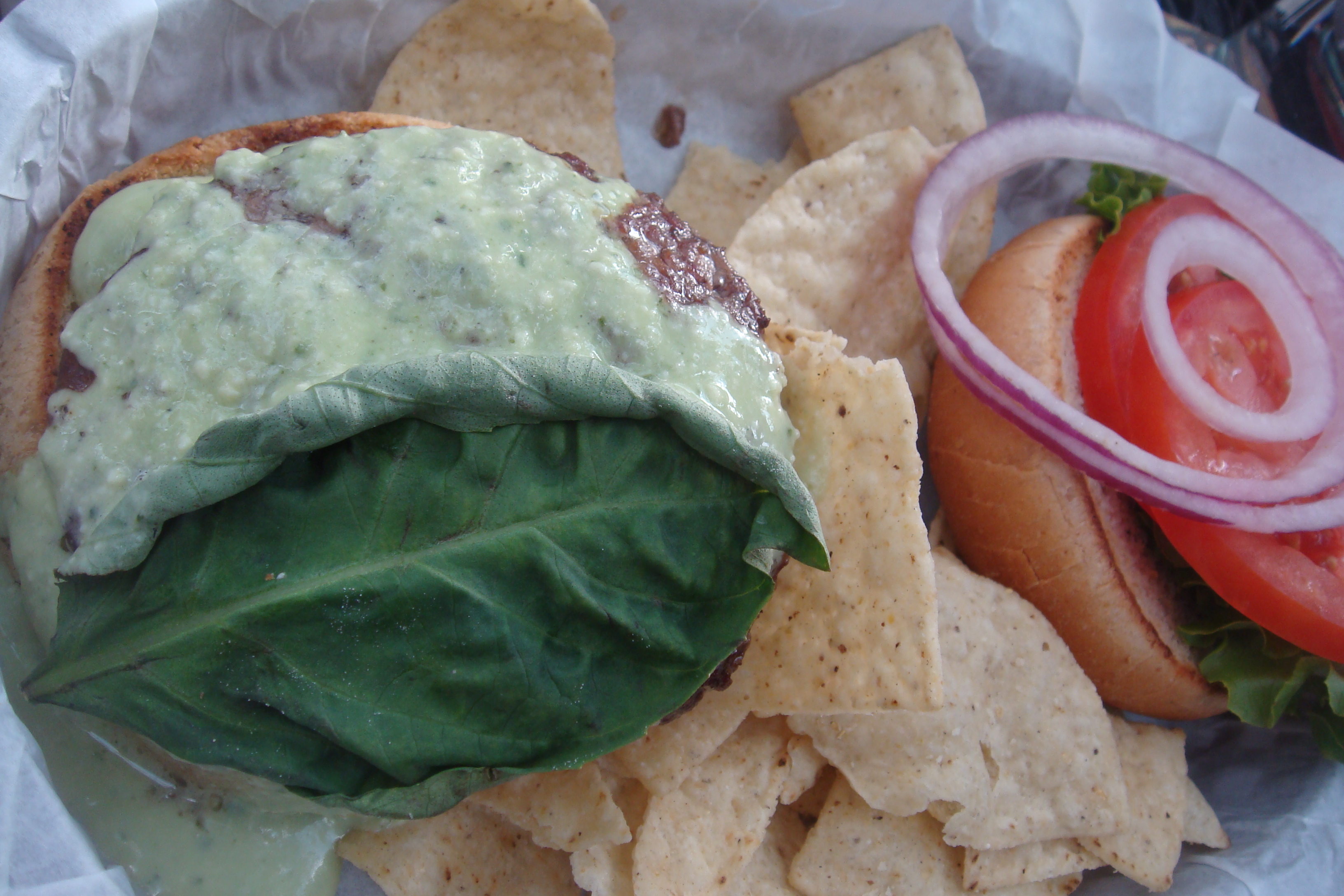 Joey got the Basil Blue Burger.  It’s a blue cheese and basil sauce on top a burger.  The sauce was pretty.darn.good!