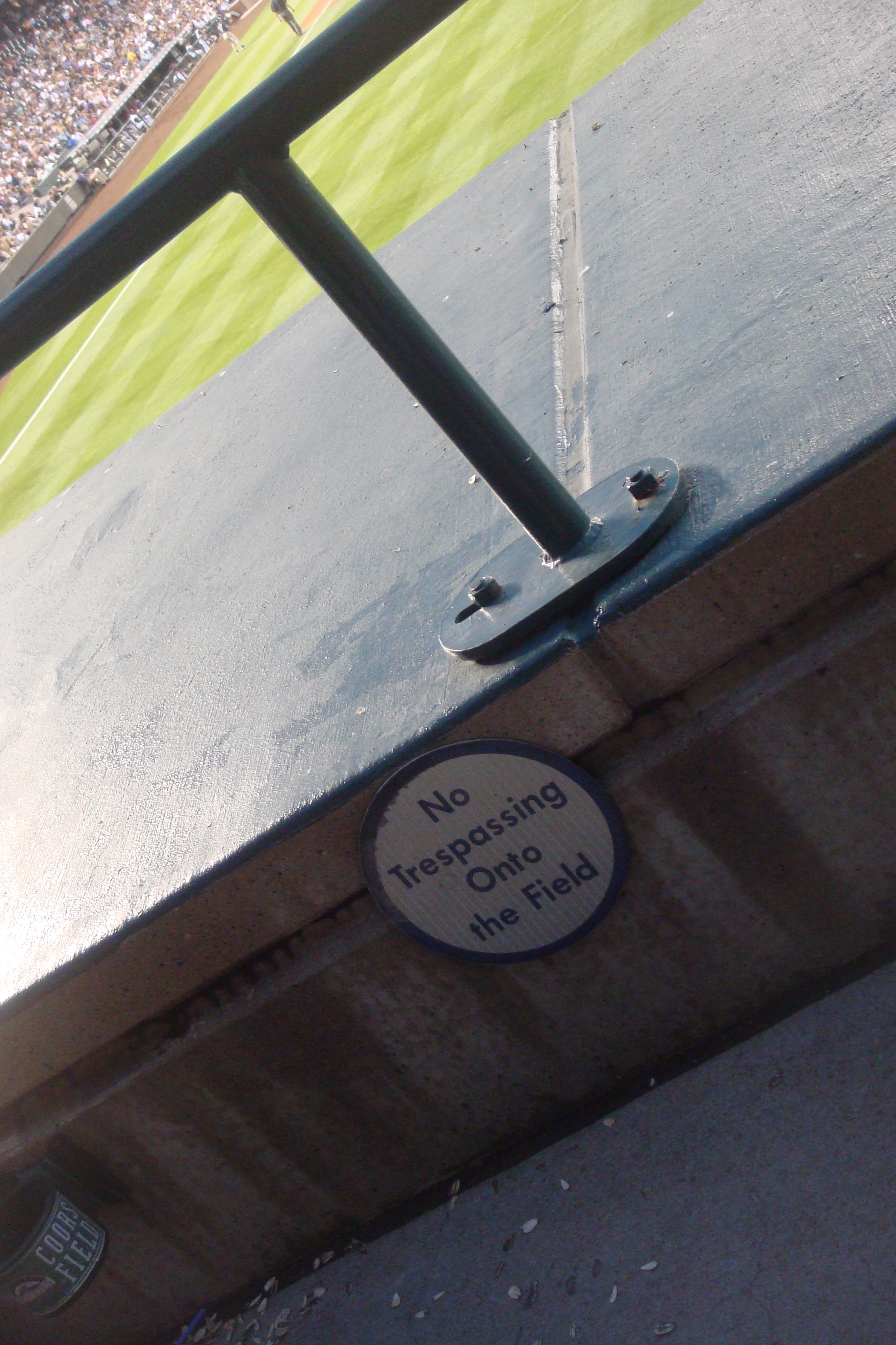 Apparently this sign is hilarious because if you did trespass onto the field you’d have to fall down a 20 foot drop first.