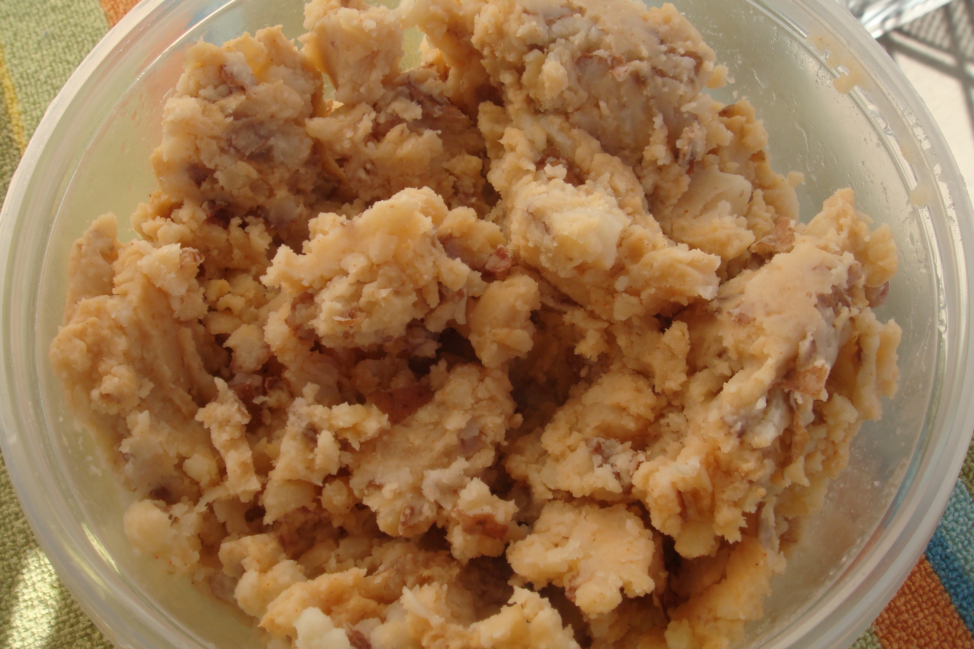 Once you’ve recovered from processor shock and the potatoes are done mash them with some milk of choice and butter of choice.  The add in the bean mixture and try not to eat the whole bowl.
