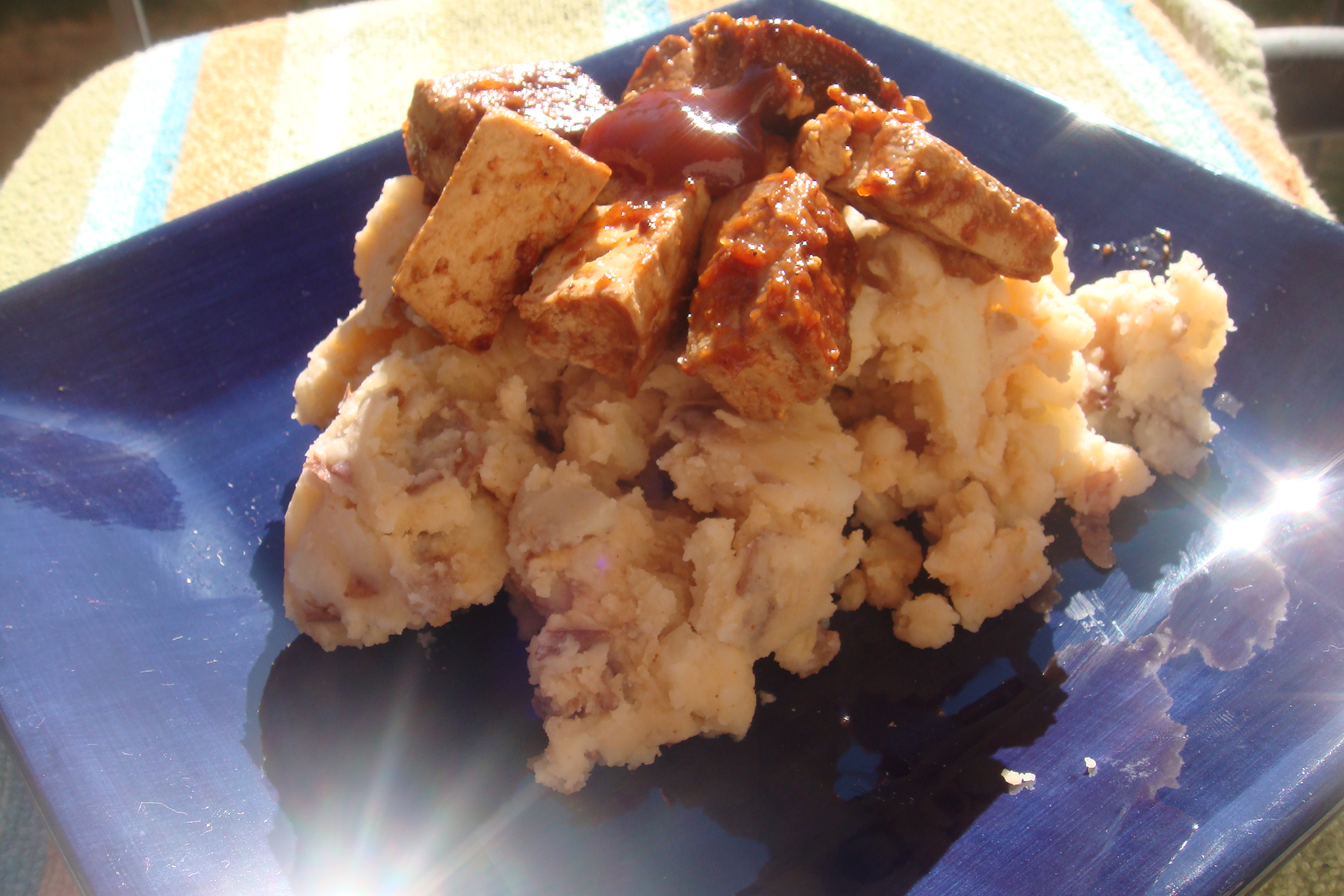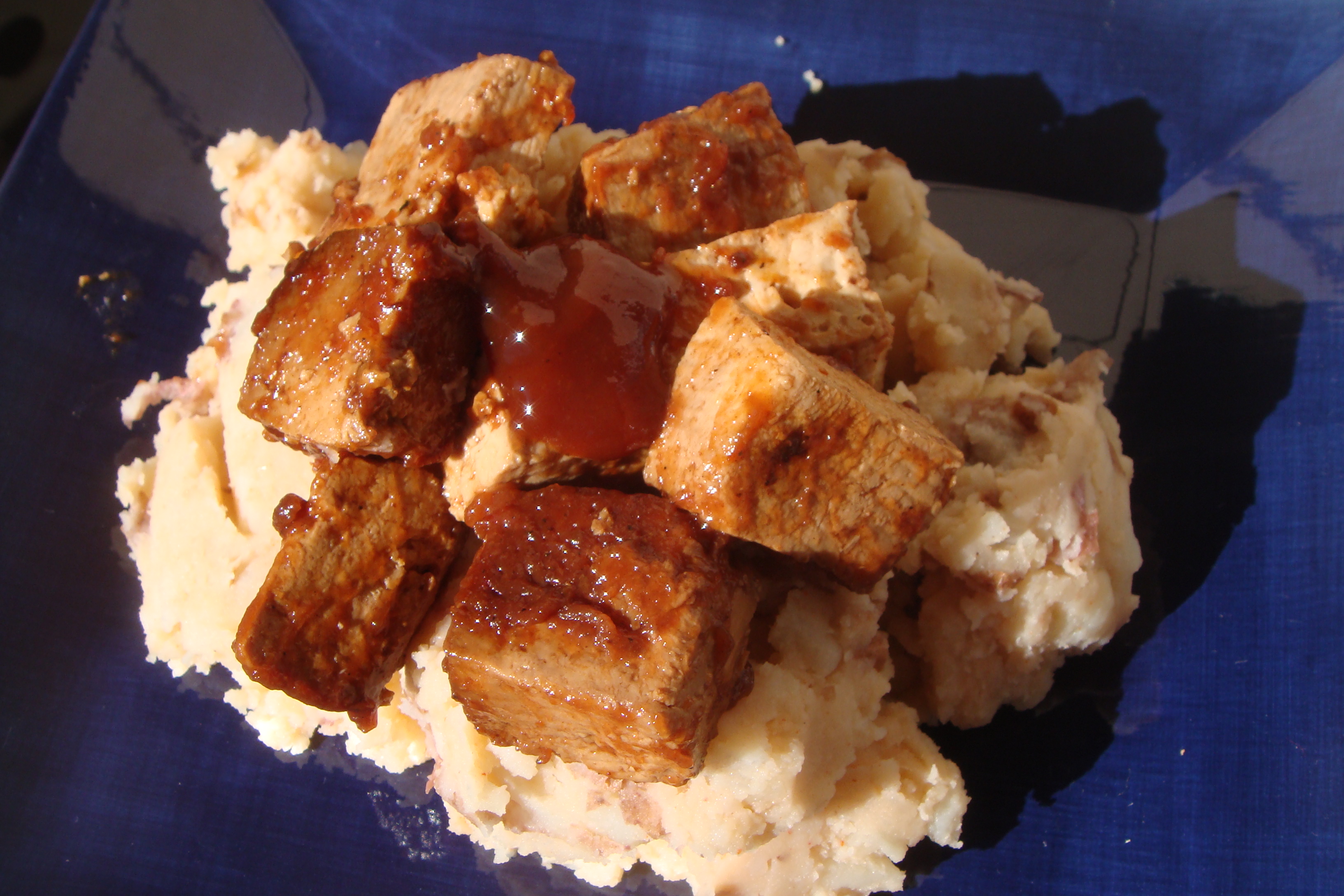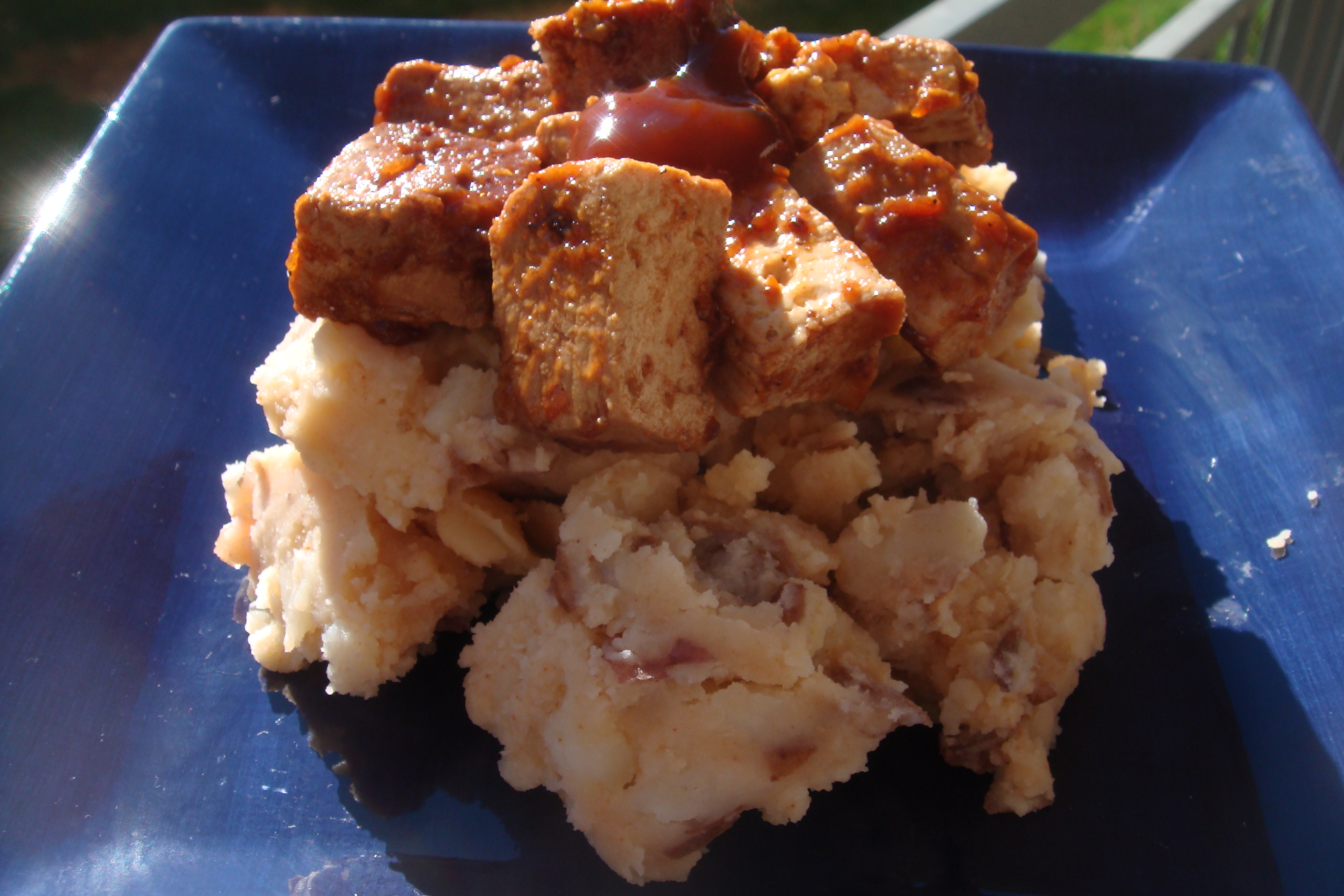 Turns out these pictures are not appealing but I promise bbq tofu atop a pile of protein packed garlic potatoes was just what I needed after a long day of work. I gobbled this plate up so fast!