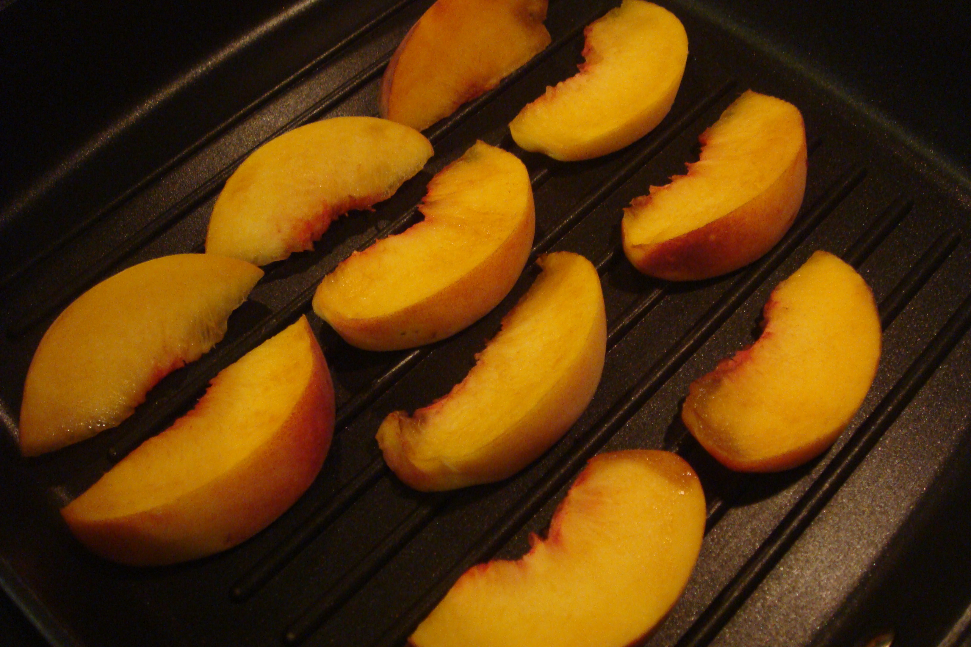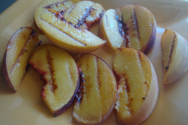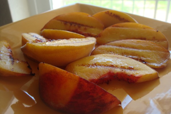 Start by slicing and grilling one peach.