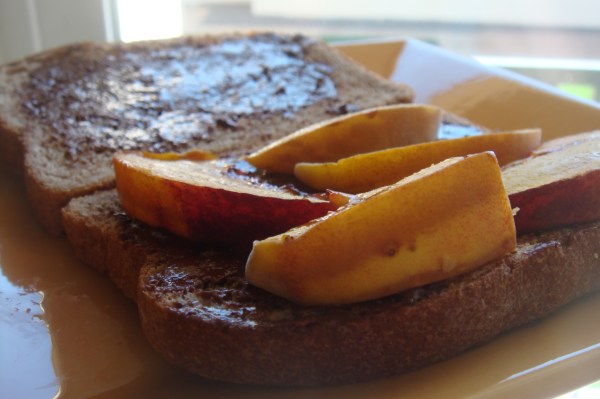 Having this sit in a tupperware container during my bus ride to school actually made the sandwich even better! The bread was slightly crunchy and still warm but the heat made it soften enough to really stick to the peaches.