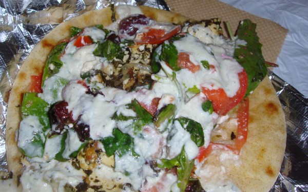 Joey and I shared the only meat-free meal I could find. The gyro stand had vegetarian AND vegan options, say what?! Our gyro had tofu, tzatziki, greens, tomatoes, feta and kalamata olives. Messy, but delicious.