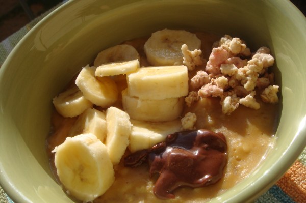 I made my oats per usual but added 1/3 cup Libby’s canned pumpkin at the end and topped it with banana, cherry vanilla granola and Justin’s Hazlenut Butter.