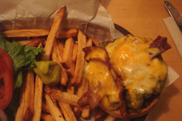 Joey had the S.O.B Burger, which he deemed better than the Basil Blue Burger. He cleaned his plate so it must have been good!