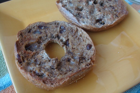 Cinnamon raisin bagel with butter on the side.