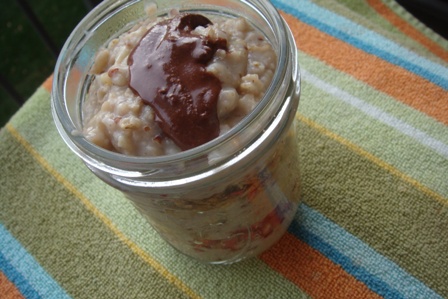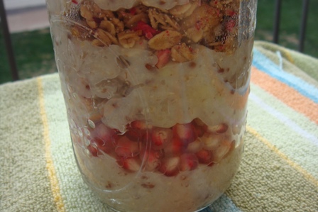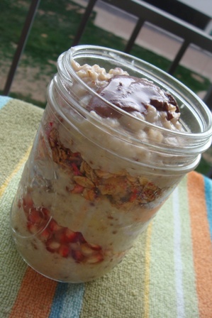 I’ve discovered my now empty Ball jar is perfect for oatmeal parfaits!