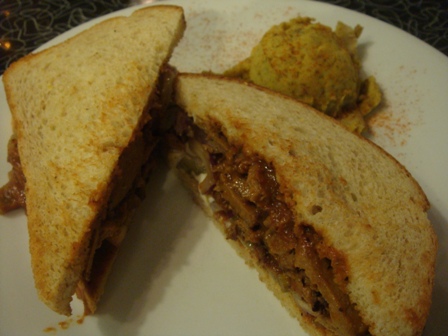 Joey was surprised when I ordered a BBQ sandwich but the description sounded awesome and I really wanted to try seitan. Just for the record, it is the most meat-like meatless thing I’ve ever tasted!! I couldn’t believe this wasn’t pulled pork!