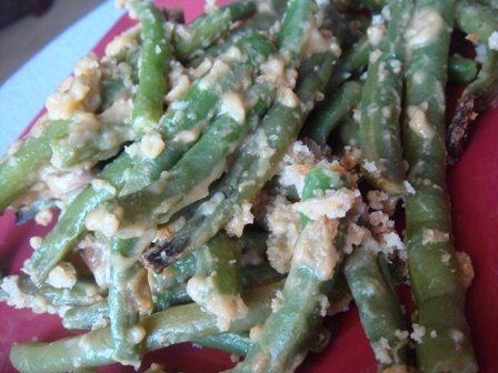 How about that I forgot to cut them into bite sized pieces. Where is my brain? Maybe the beans would have cooked all the way if they’d been in smaller pieces. I kept them in the oven half an hour longer than the recipe told me to and they were still slightly crunchy! Good thing I tested the recipe out before Thanksgiving, huh?