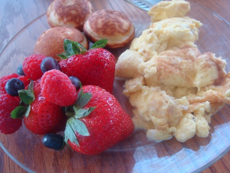 Also on the plate were scrambled eggs topped with avocado but I wasn’t really into them. Obviously I was more into the fruit and pancake puffs!