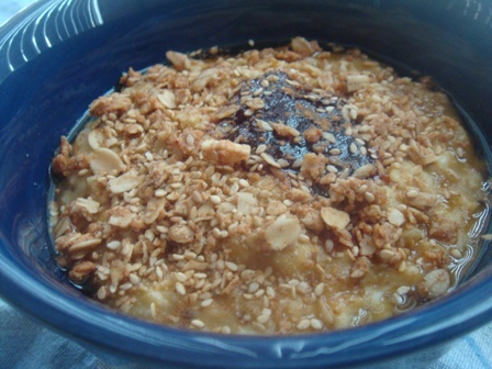 Our bananas are not ripe enough yet so I’ve been mixing in 1/4 cup applesauce at the very end to sweeten and fluff up my oats.  I tasted a spoonful today and after mmm-ing and ahh-ing I realized it’s not unsweetened.  No wonder it’s so good!