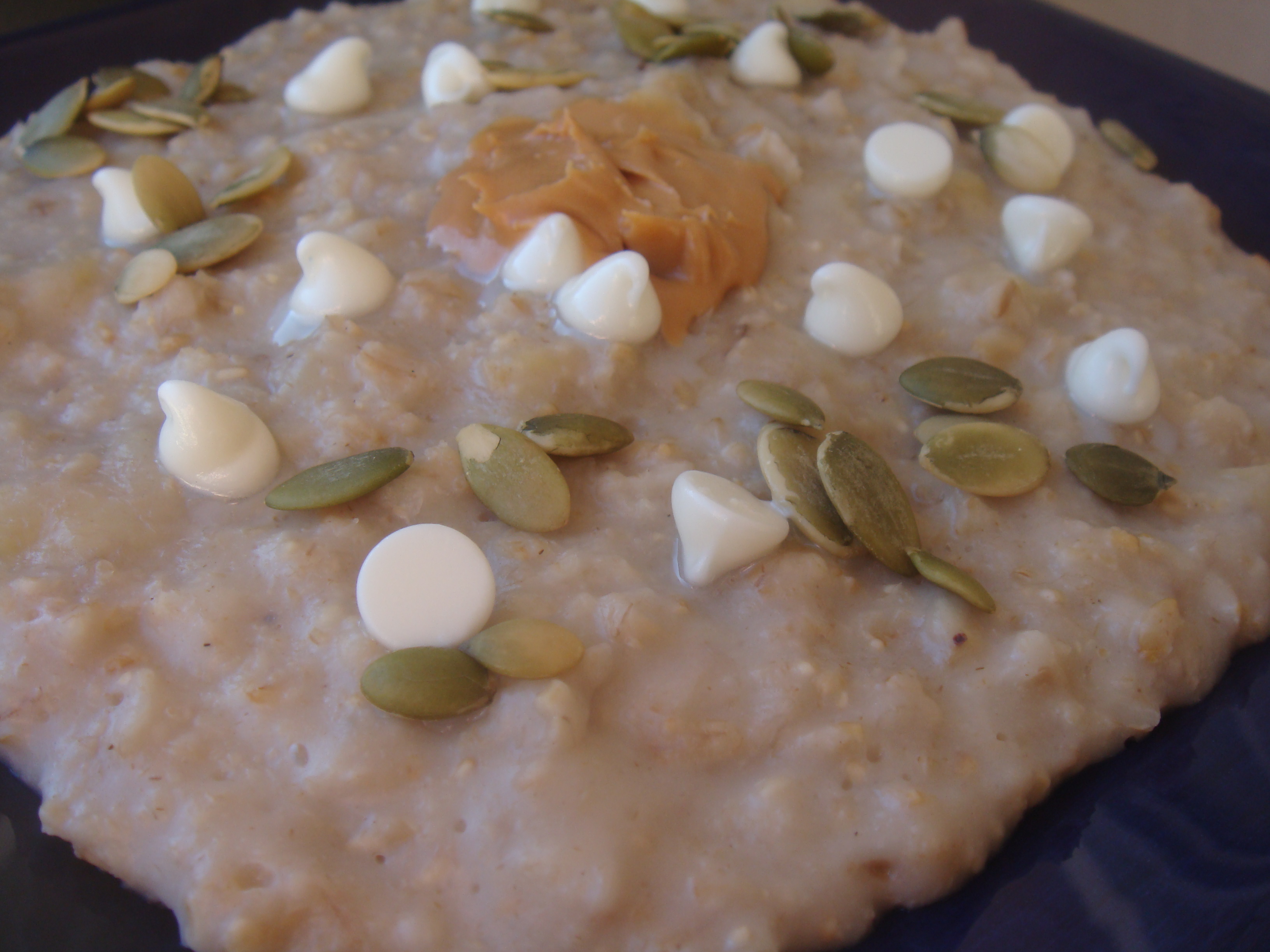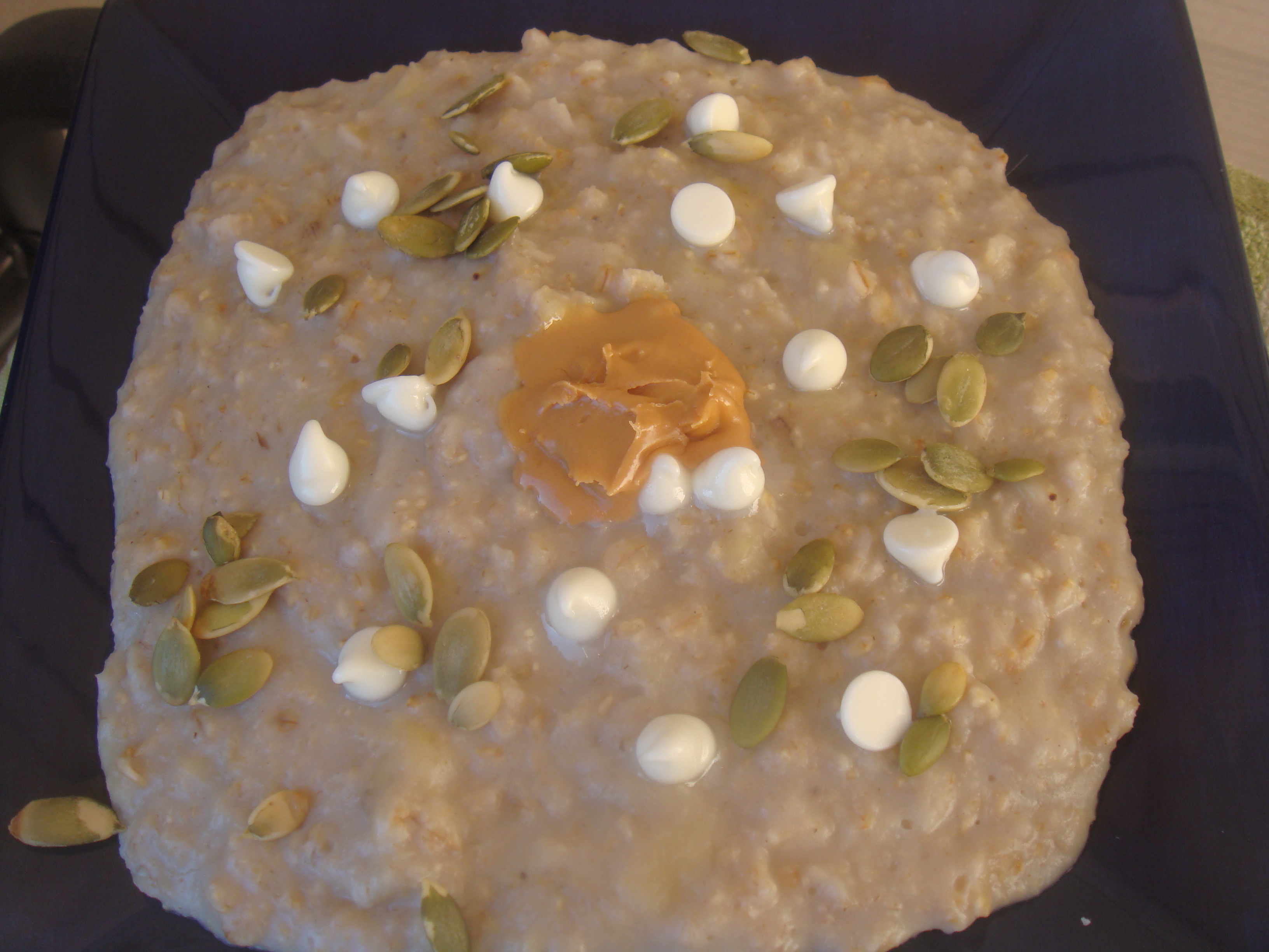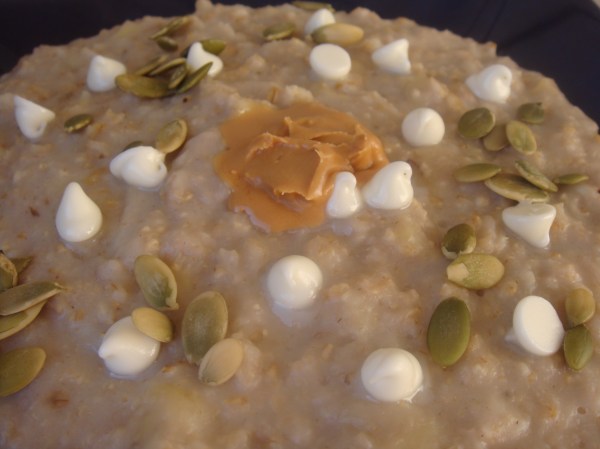 All jokes aside I woke up with a very serious white chocolate craving so atop the oats they went!