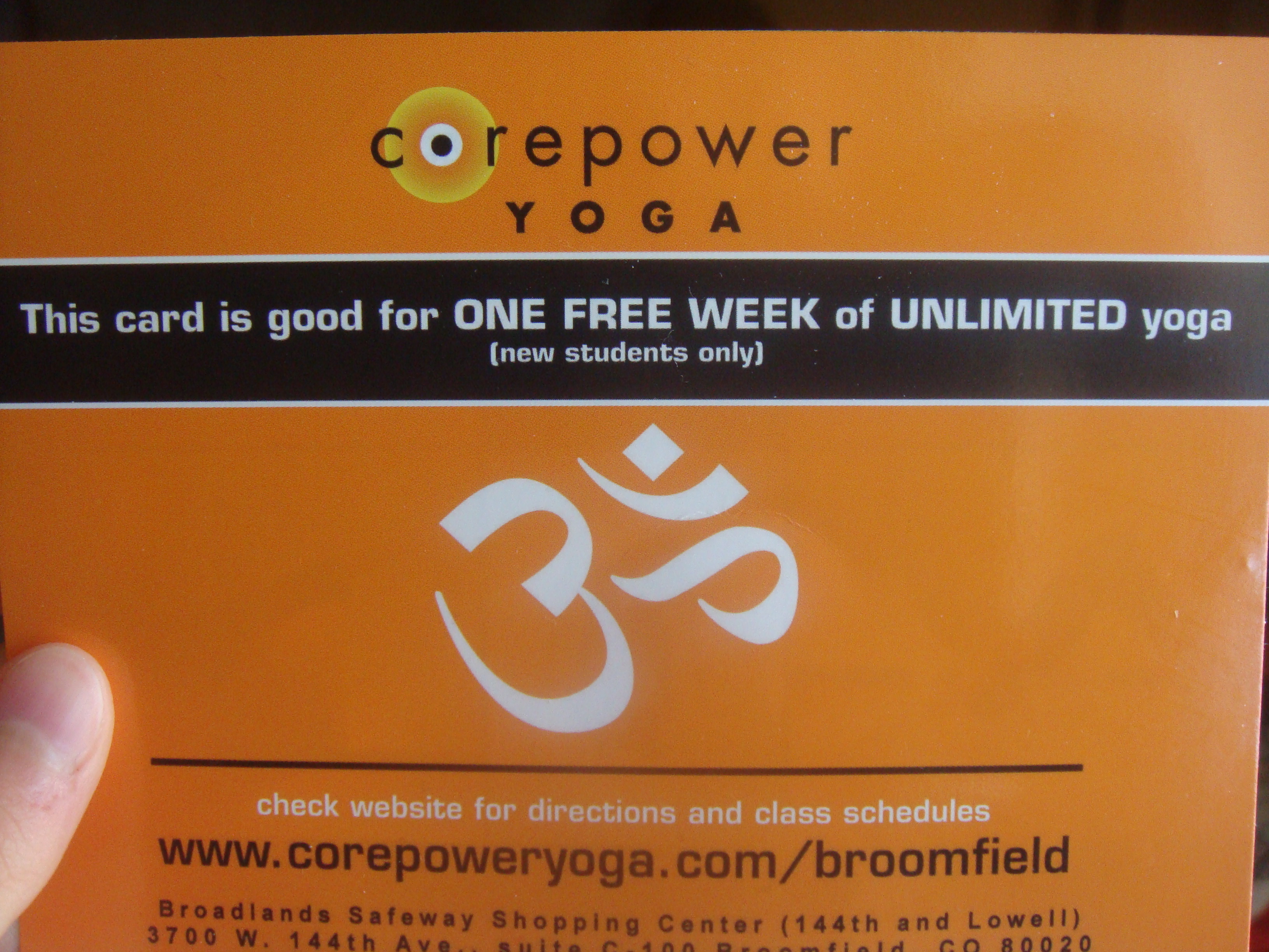 One free week of unlimited classes at CorePower Yoga which is literally 5 minutes from where I live and I’ve been meaning to look up class schedules there.