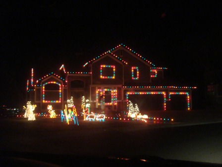 After watching a game of dreidel we headed home so we could crash into bed. We saw this nicely lit house on the way home.