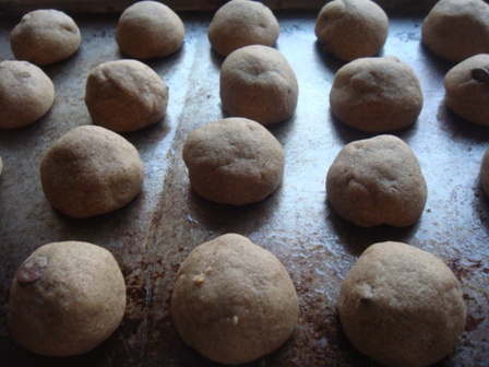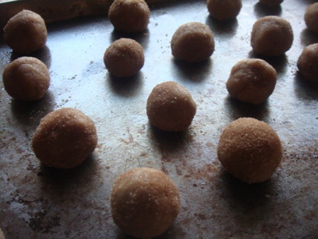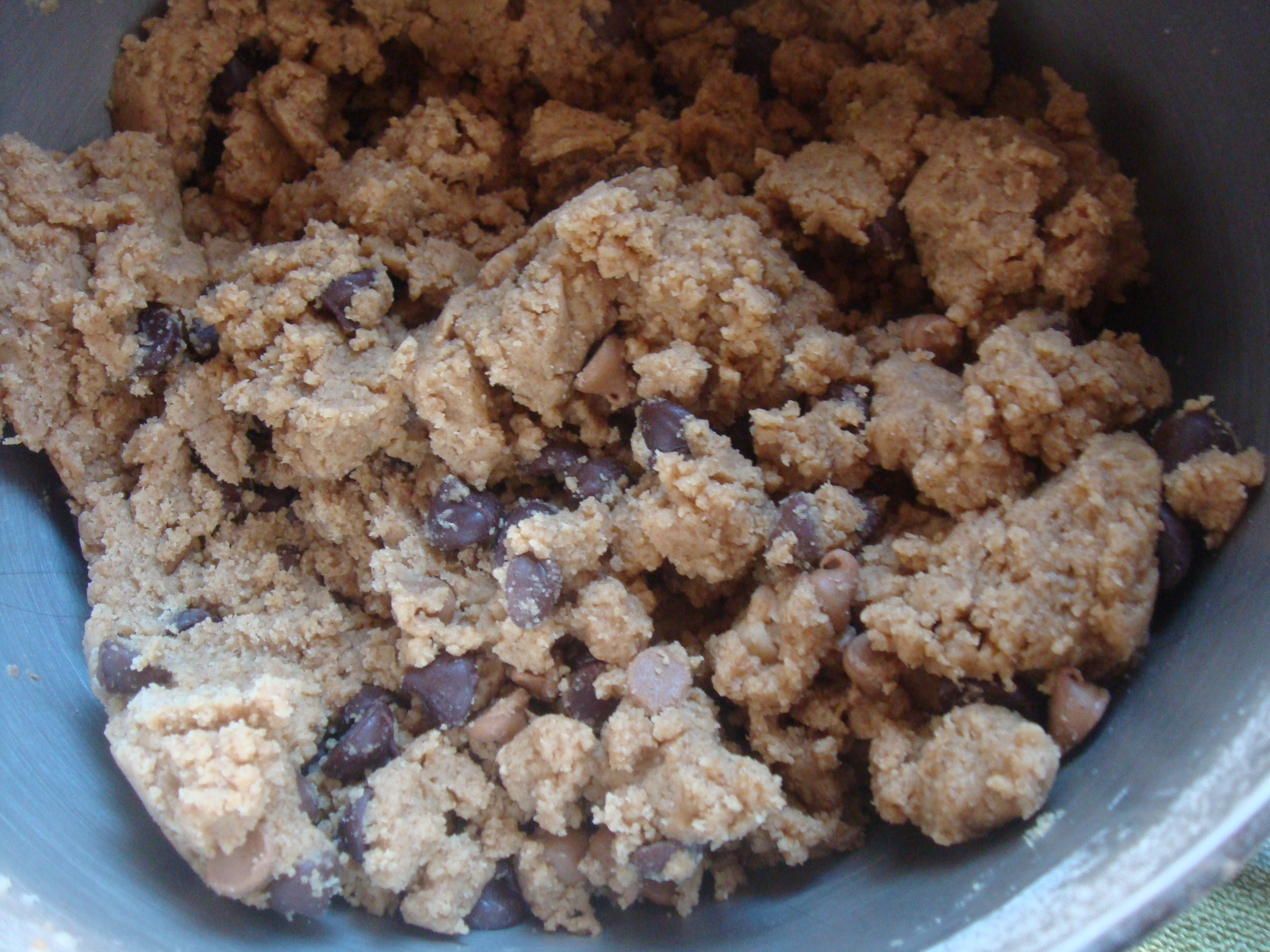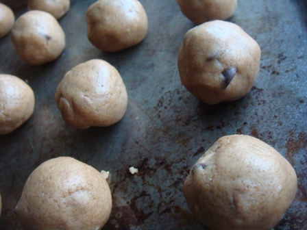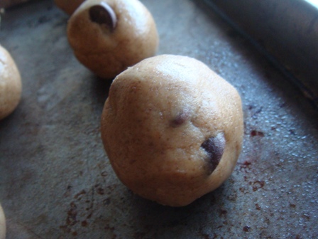 Dough was made.  Two batches of peanut butter/chocolate chip dough balls.