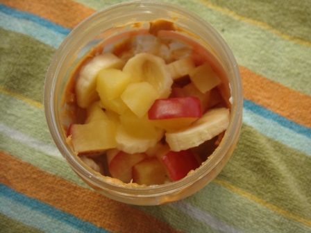 Did you know peanut butter, apples and bananas are a match made in heaven even if goopy oats are in the mix? It’s true. These toppings saved this jar.