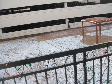 Weather is chilly (and by chilly, I mean like 10 degrees) and snowing on and off!
