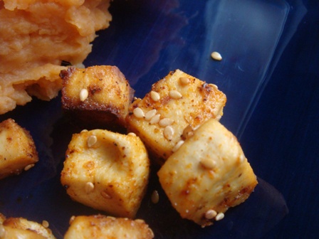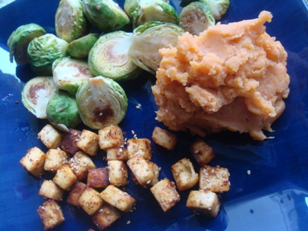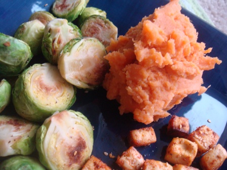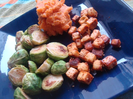 Lunch was a repeat of Thursday’s dinner. Tofu, brussels and mashed sweet potatoes. ❤