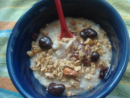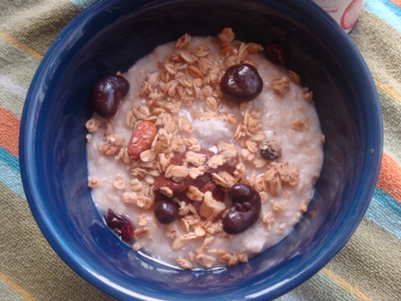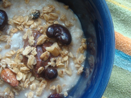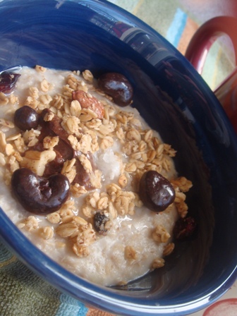 Also topped with granola and a few dark chocolate covered cashews, which were a gift from my sister. Love them and her!