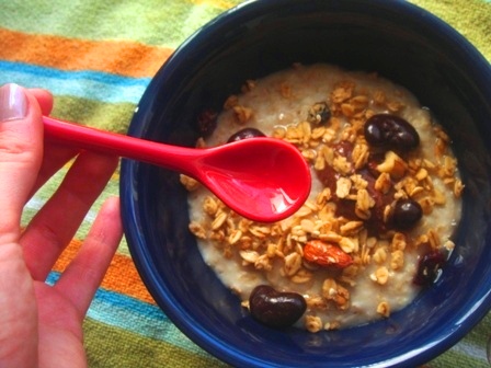 Apart from the tiny blue spoon, yesterday morning’s breakfast was less exciting. Probably because we were completely out of bananas. Don’t worry, I’ve restocked since.