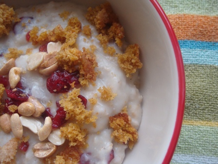 Topped with peanuts, coconut butter (which is completely melted in the picture) and crumbles of my pumpkin spice muffin from breakfast on Christmas eve.