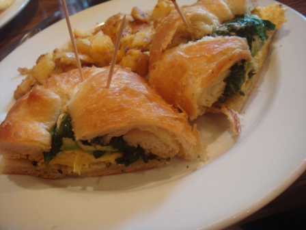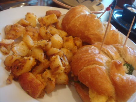In an attempt to eat something as close to what I would have gotten at Udi’s, I ordered the Pacific Croissant (minus bacon, tomatoes and cheese).  It had scrambled eggs, garlic spinach, avocado and basil pesto aoili.