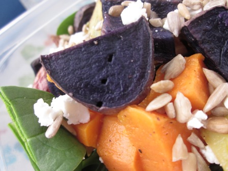 I’ve never had purple potatoes before but I’ve definitely had stanky goat cheese!!