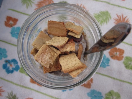 Basically I just added chocolate chips and cinnamon sugar crackers. Simple but extremely delicious. Chocolate is allowed for breakfast, especially on Fridays.