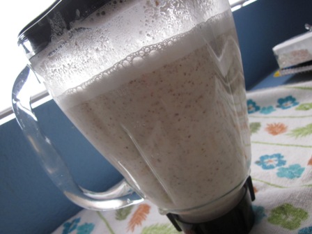Result: creamy almond milk.  The picture of which is reminding me of coffee right now and you’re right, Starbucks does sound good right about now.