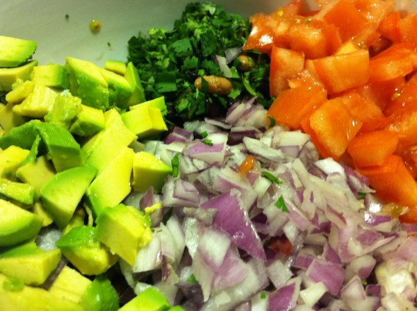Marinate for a couple of hours and then throw them on the grill for 5-8 min on each side while brushing the leftover marinade when you flip the chicken over. I shredded the Chicken after it was cooked through and added it to the fillings…saute the sliced onions, then add cumin, pepper & jalapeno after the pepper has become soft add in the salsa and chicken till warm. Fill the tacos and top with some avocado!