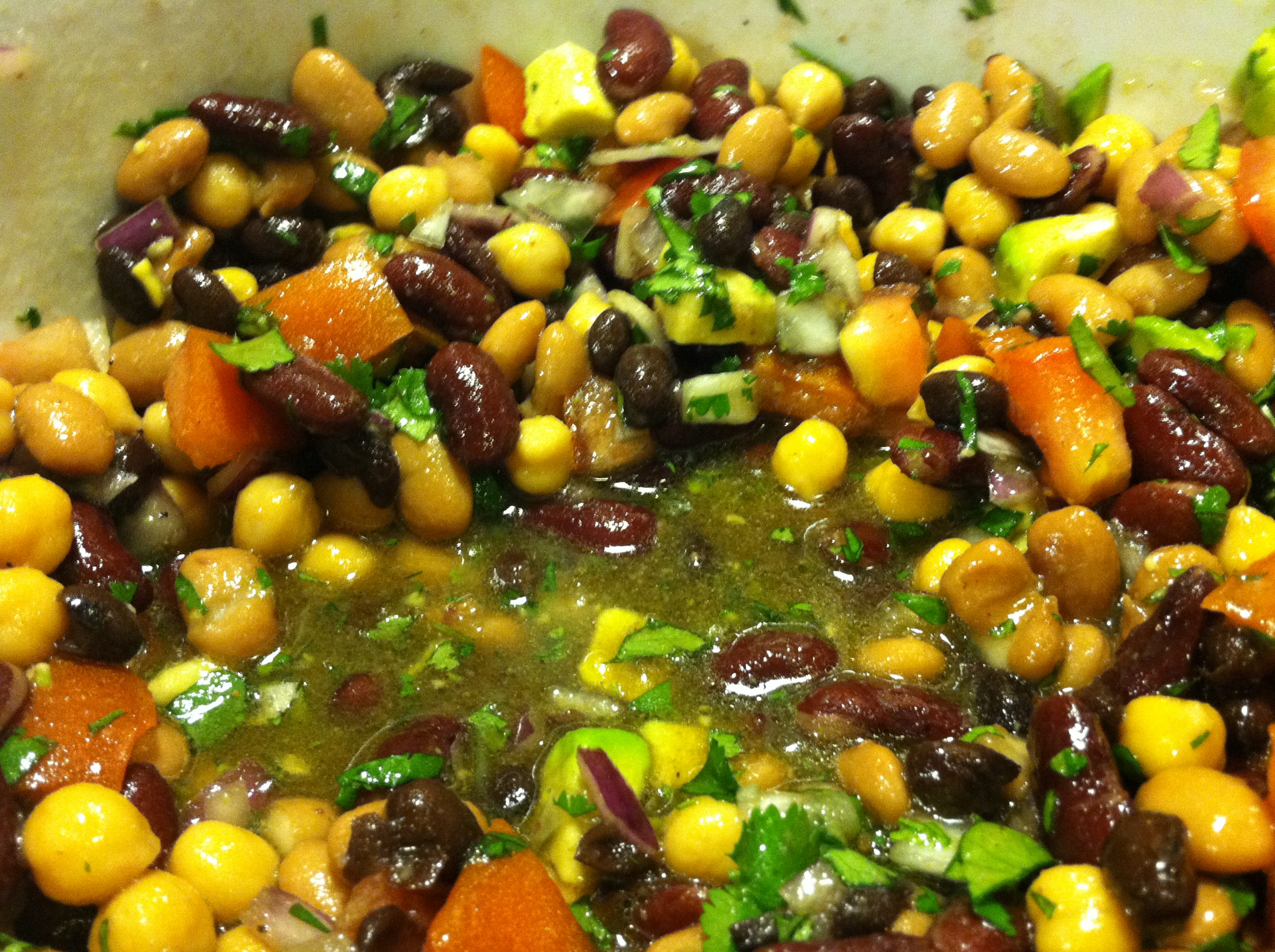 All you do is add all of this together. I changed alot from the original recipe and it tasted exactly the same as the first time I had it. You can use any of your favorite beans and I know it’ll be delicious! One recommendation I have is after you left the marinade sit for a while you should drain at least half of it because everything will get oily.