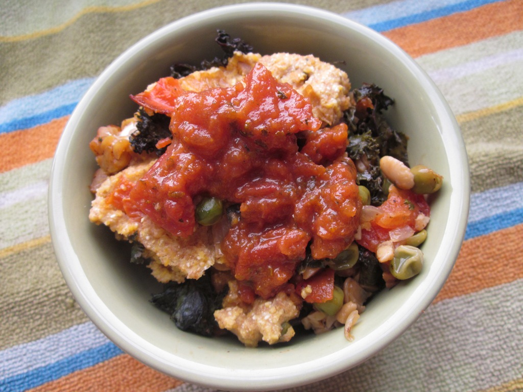 I topped mine with some pasta sauce because the cornmeal was a little dry but the veggie mixture was just delightful.
