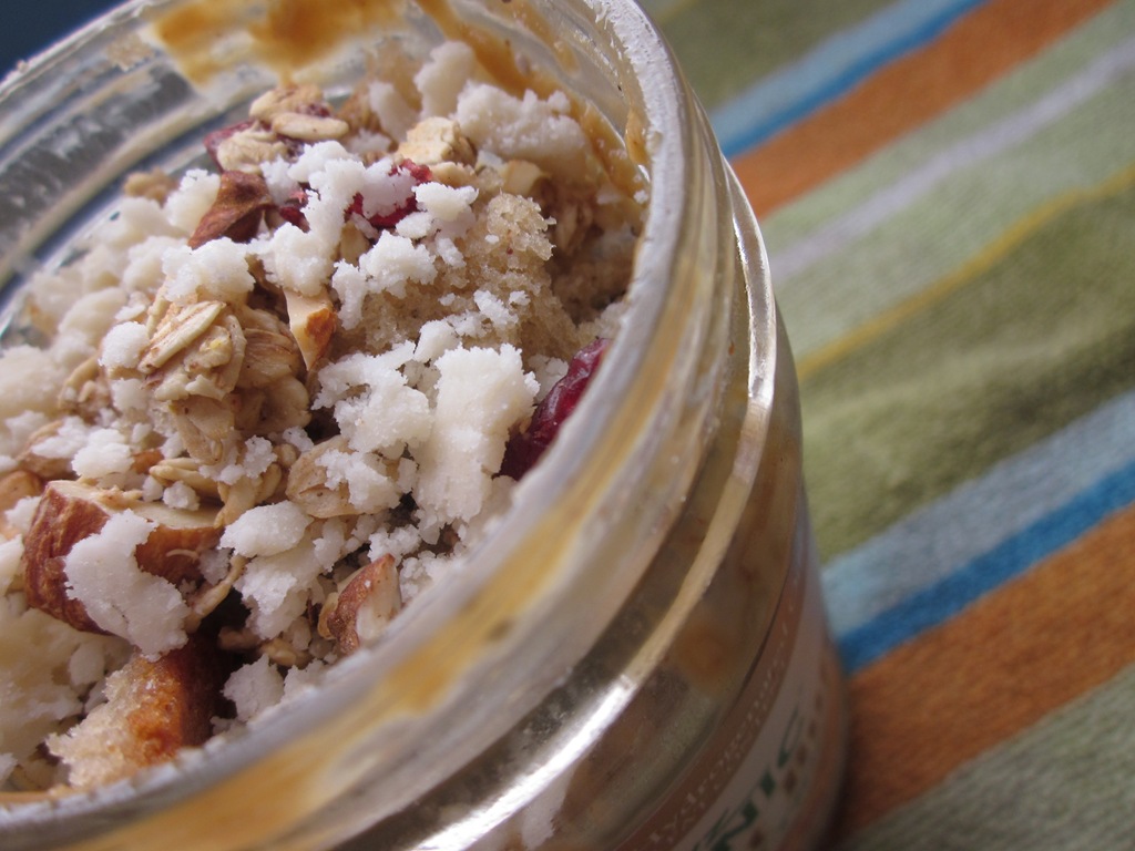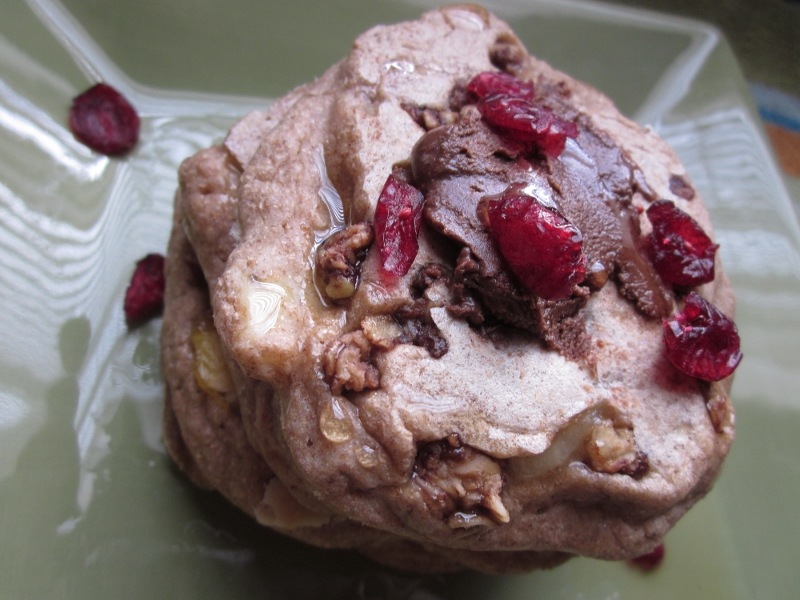 And topped with dried cranberries, plus nut butter and maple syrup.