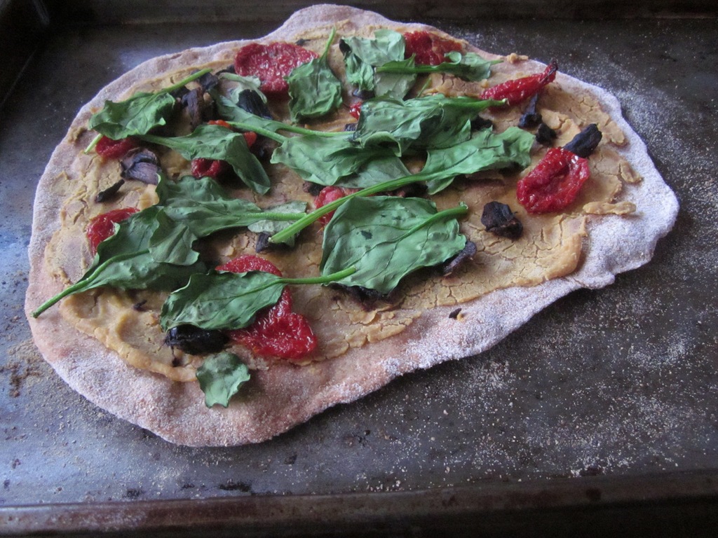I had a stroke of genius on the way home from my final and had Joey add spinach to the pizzas.  He had to be fancy and saute his.  Psh.